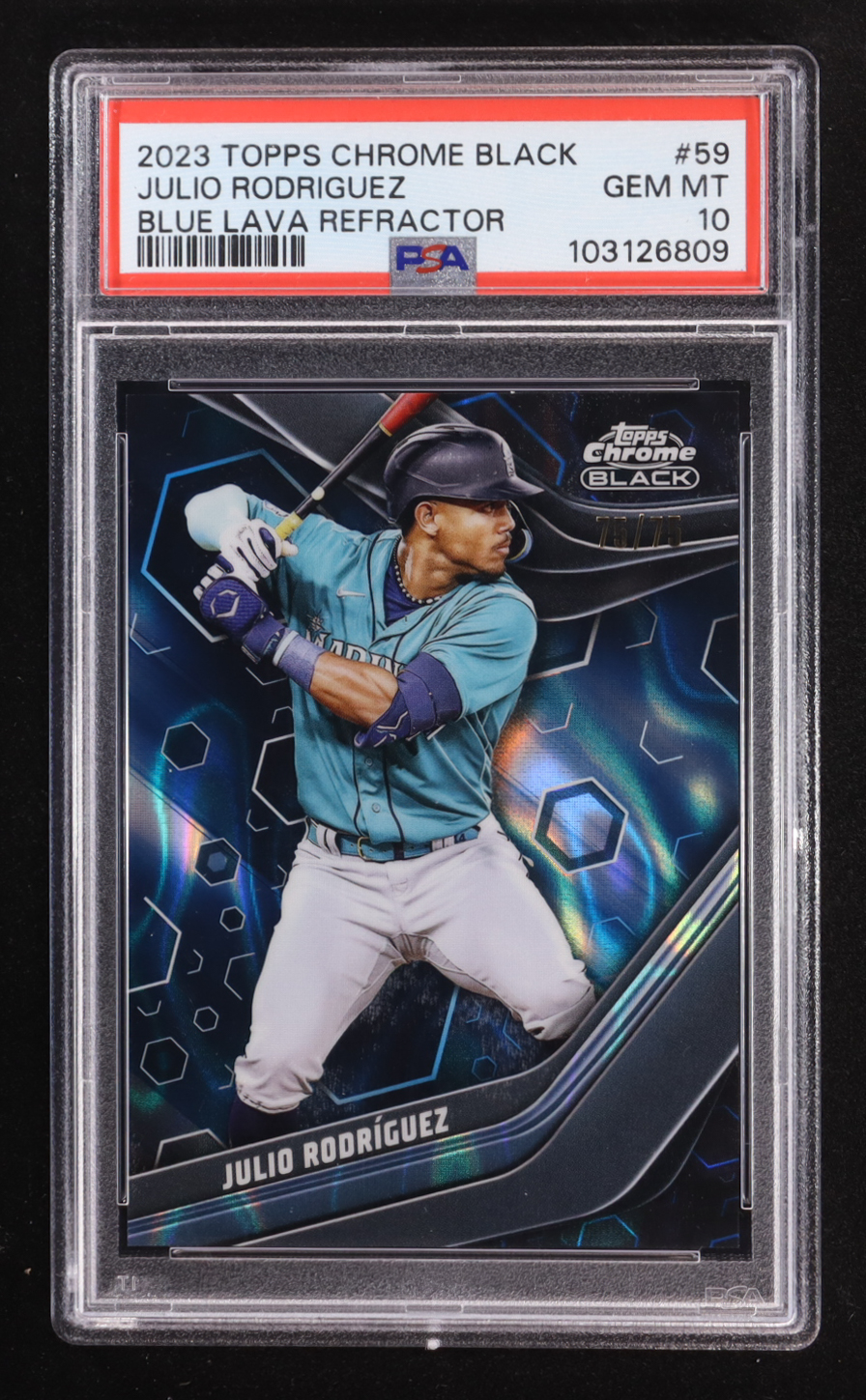 Julio Rodriguez 2023 Topps Chrome Black Blue Lava Refractor #59 #75/75 RC (PSA 10)