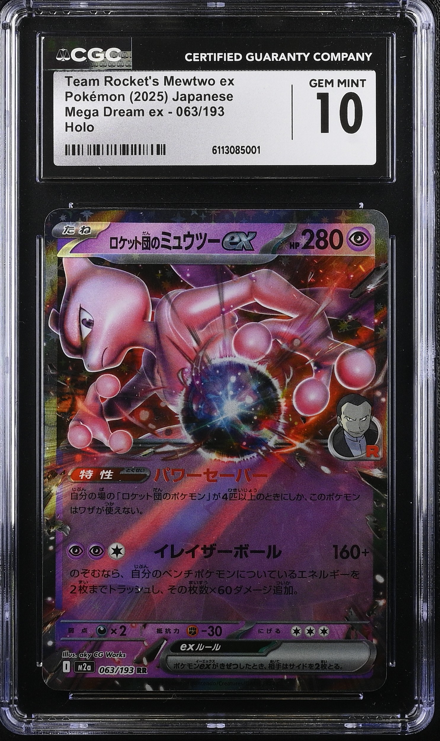 Team Rocket's Mewtwo Ex 2025 Pokemon Mega Dream Ex Japanese Holo #063/193 (CGC 10)