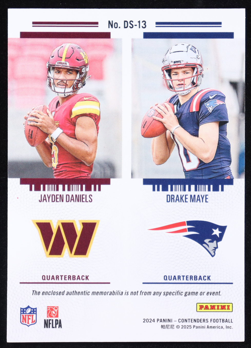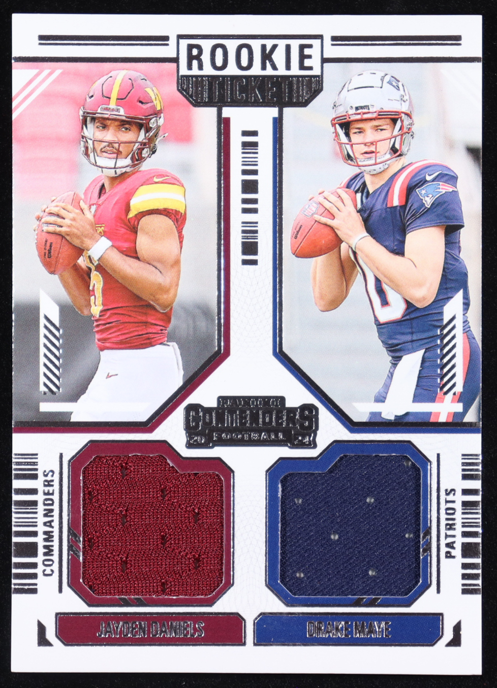 Drake Maye / Jayden Daniels 2024 Panini Contenders Rookie Ticket Dual Swatches #13 RC