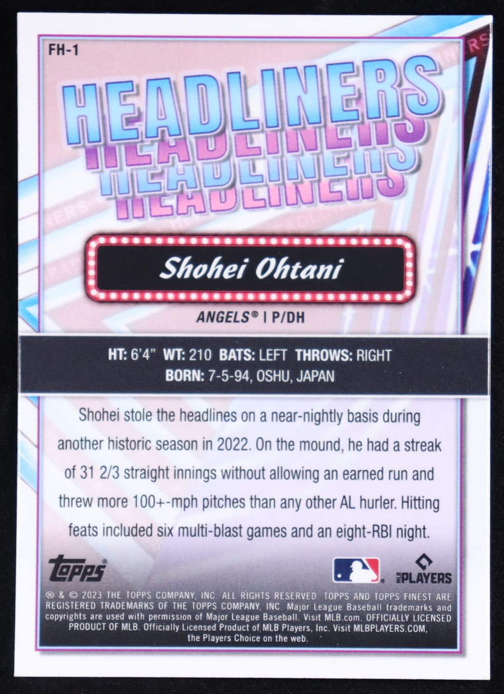 Shohei Ohtani 2023 Finest Finest Headliners #FH1