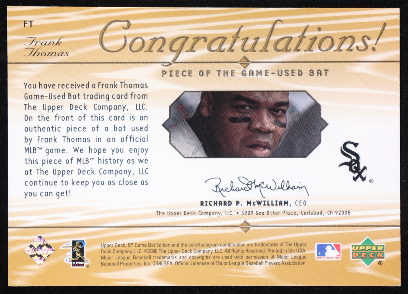 Frank Thomas 2001 SP Game Bat Edition Piece of the Game #FT