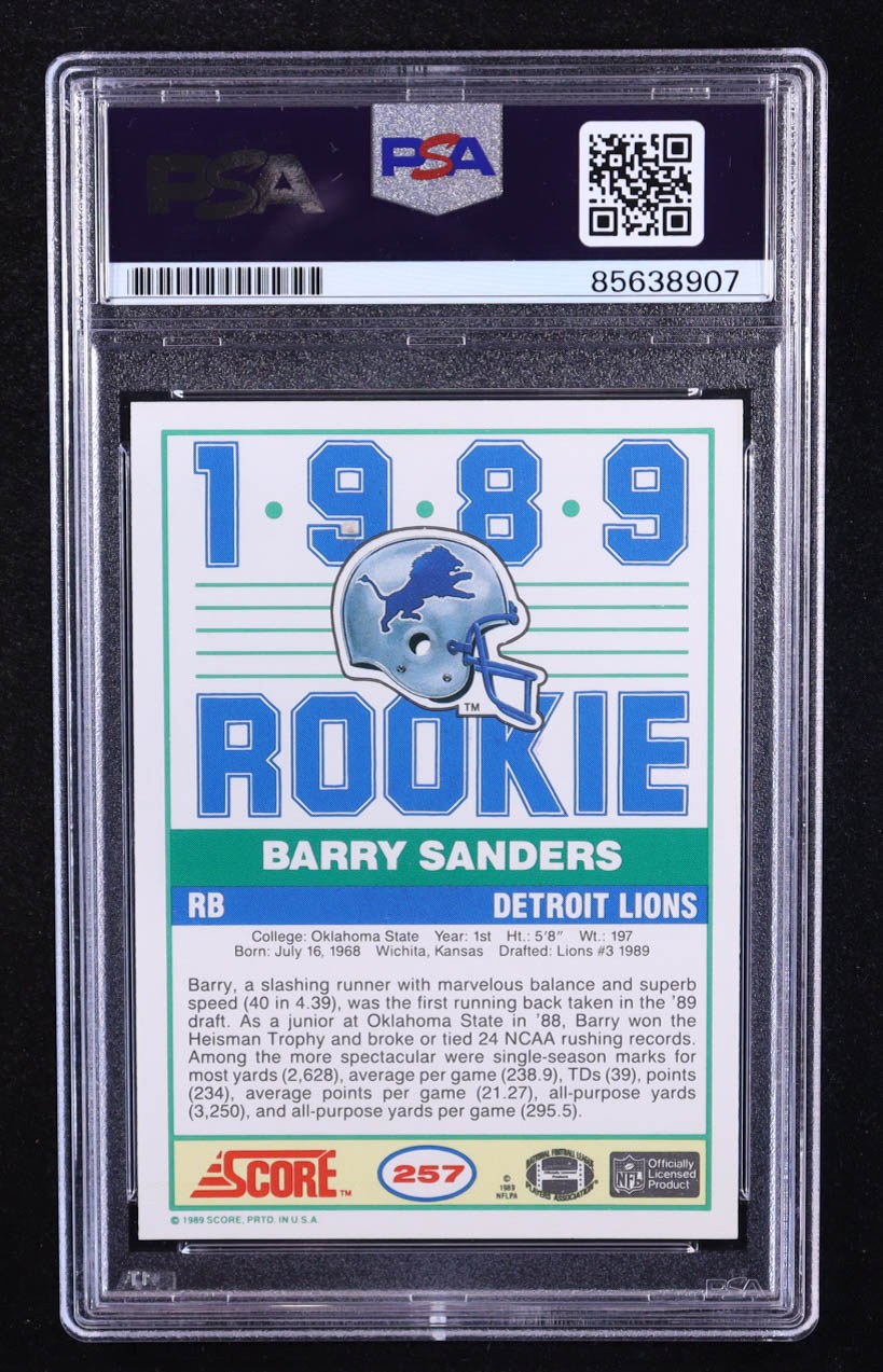 Barry Sanders Signed 1989 Score #257 RC (PSA | Autograph Grade 10)