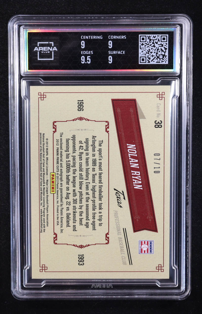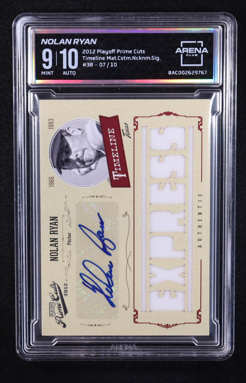 Nolan Ryan 2012 Prime Cuts Timeline Materials Custom Nicknames Signatures #38 #07/10 (Arena Club 9 | Autograph Grade 10)