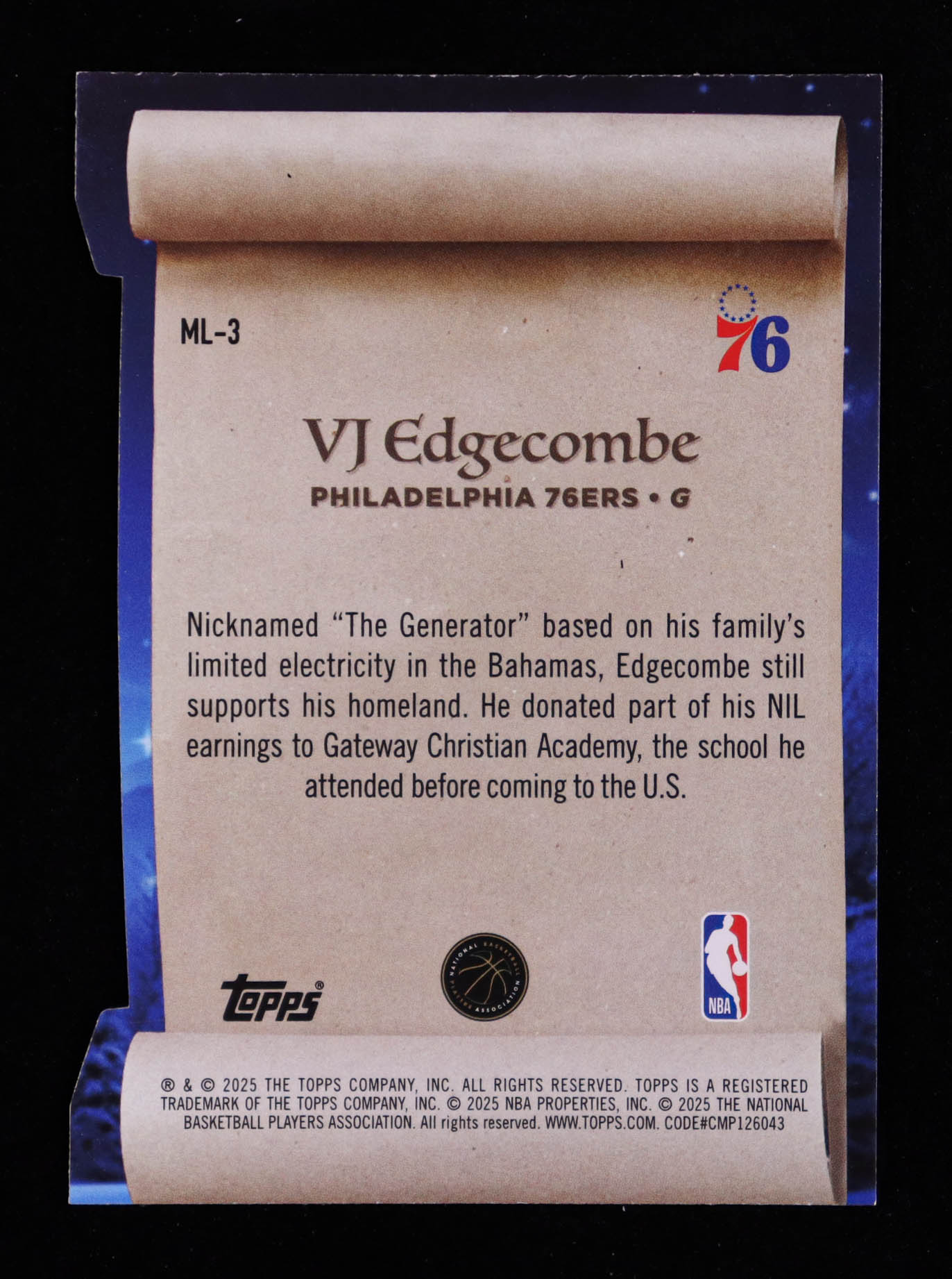 VJ Edgecombe 2025-26 Topps Holiday Making The Nice List #ML3 RC