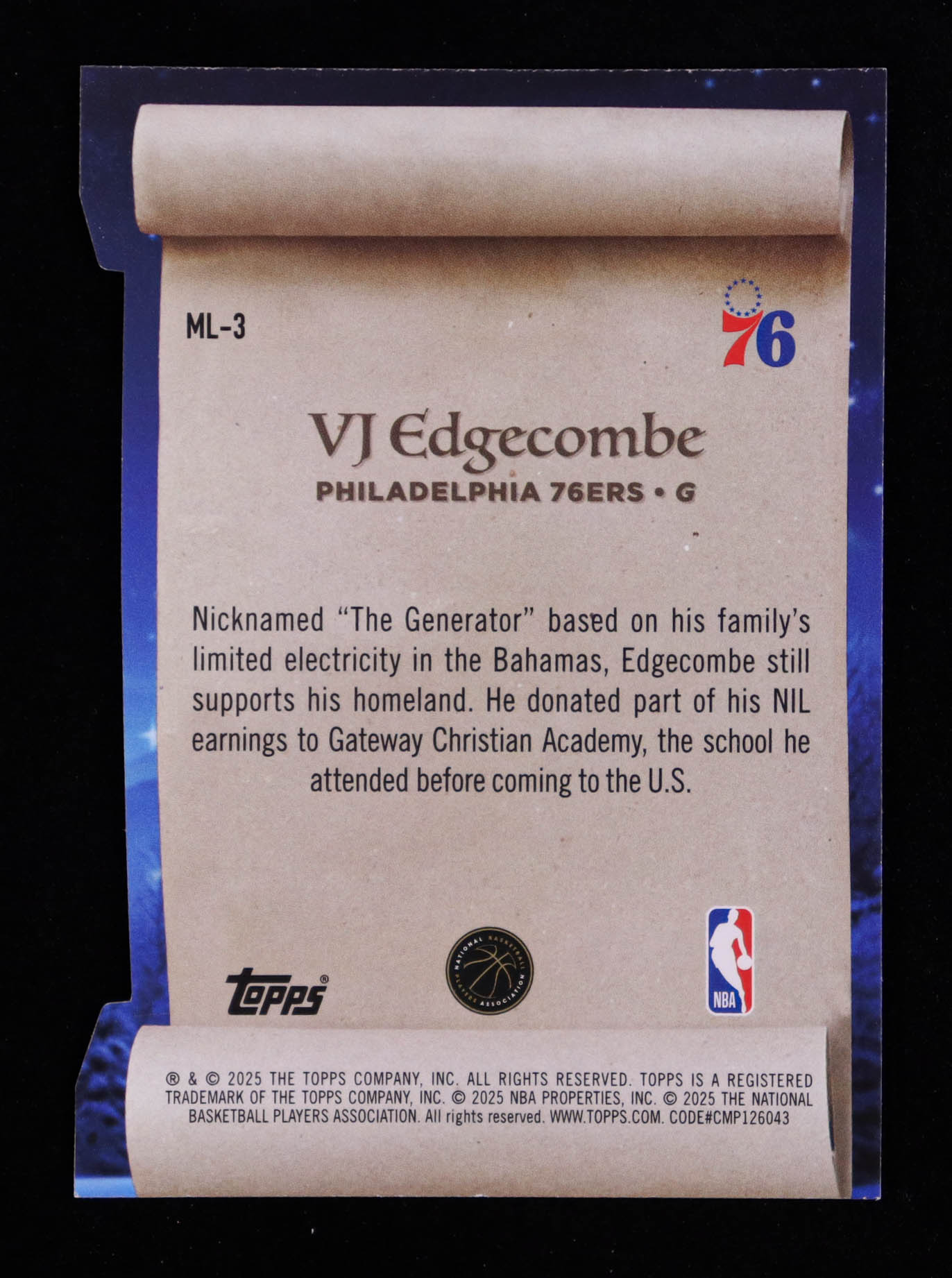 VJ Edgecombe 2025-26 Topps Holiday Making The Nice List #ML3 RC
