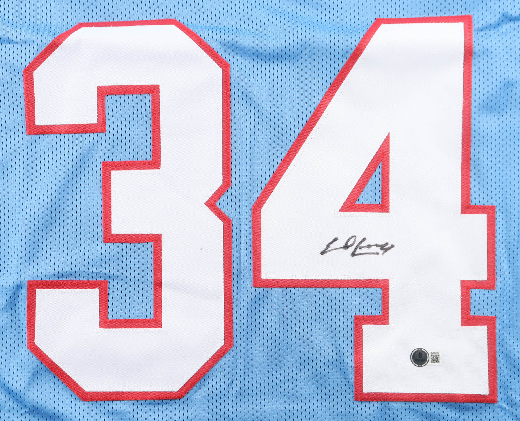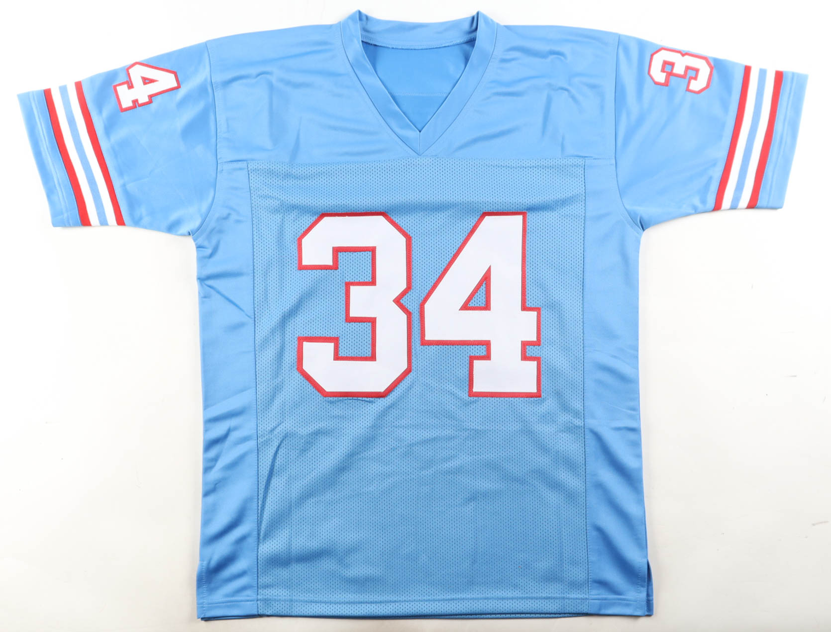 Custom jersey with everything sewn on, size XL. Hand-signed by Earl Campbell (HOF).