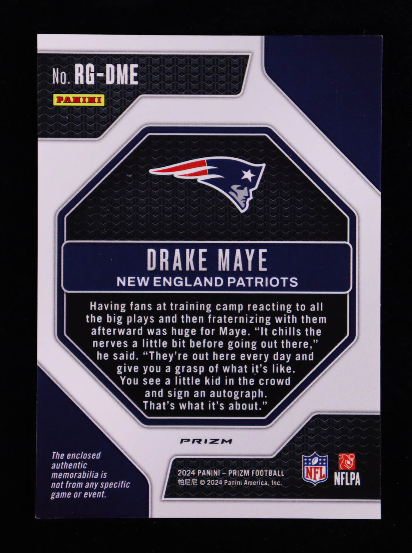 Drake Maye 2024 Panini Prizm Rookie Gear Pink #6 RC
