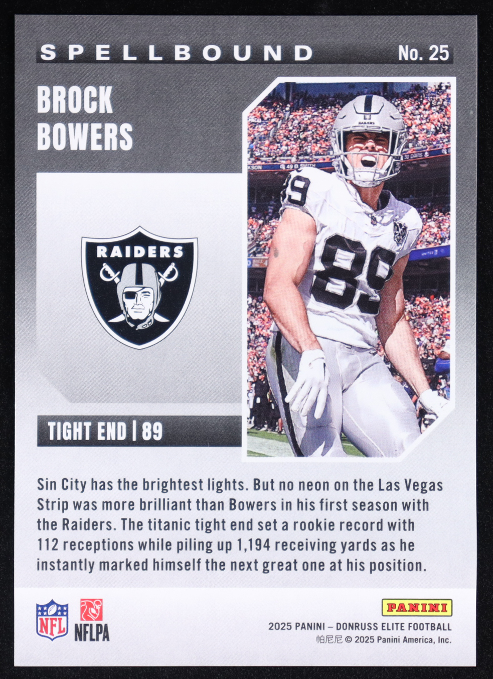 Brock Bowers 2025 Elite Spellbound #25 #119/799 RC