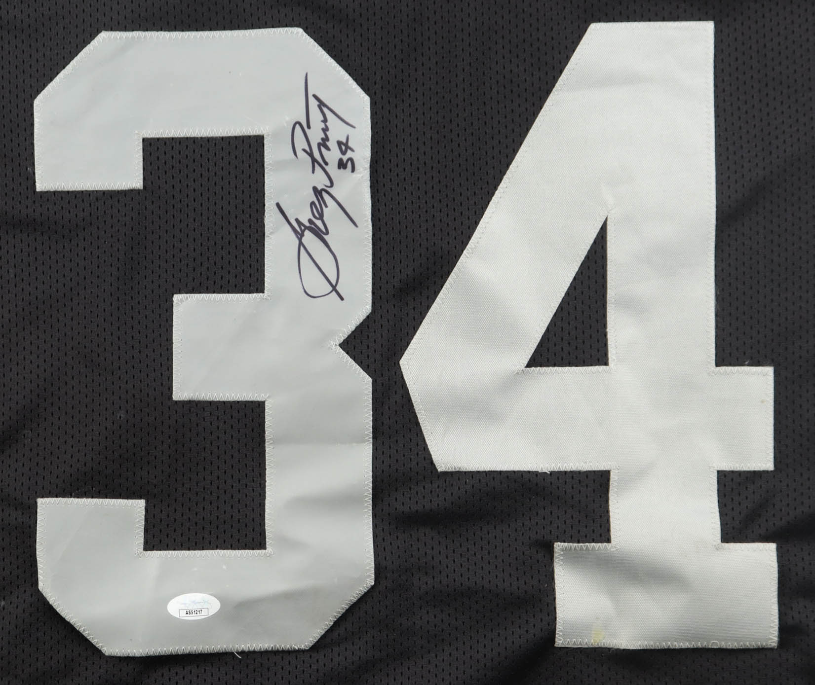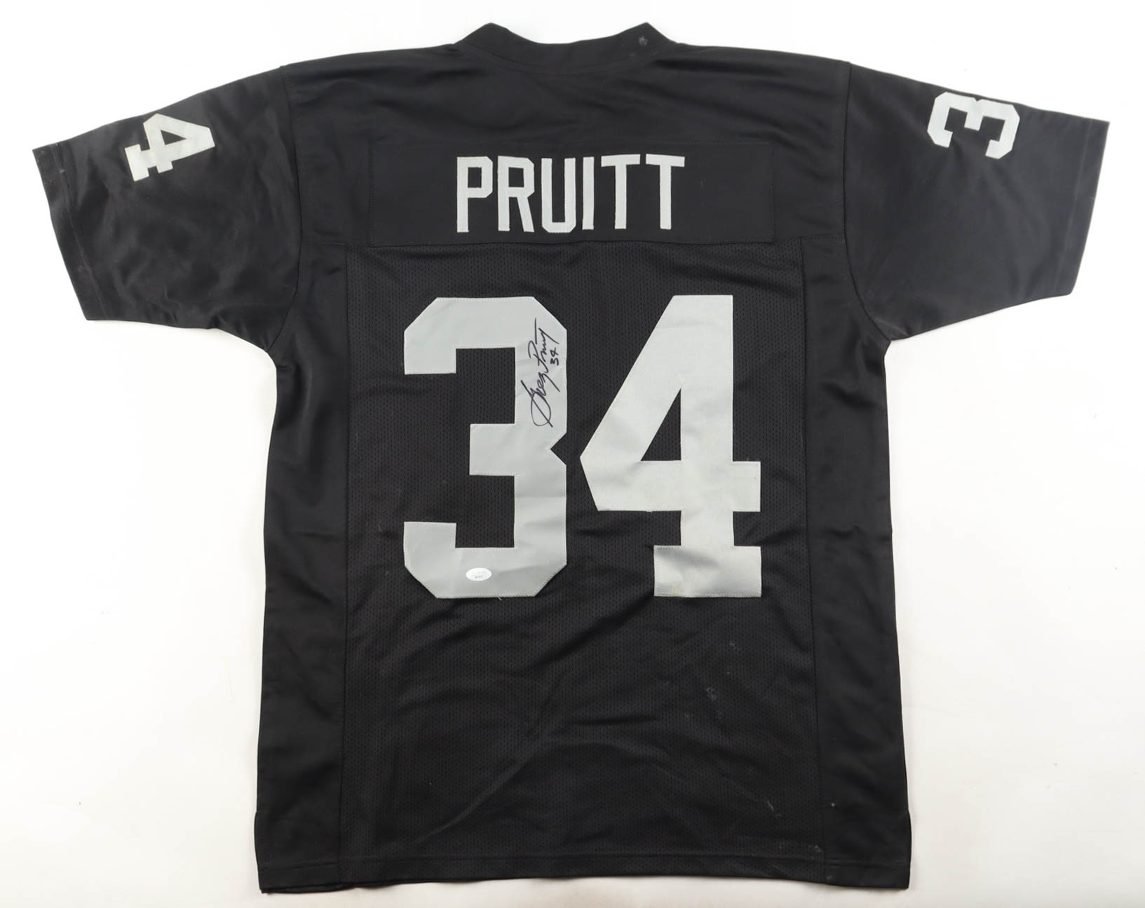 Custom jersey with everything sewn on, size XL. Hand-signed by Greg Pruitt. Please note, there is staining throughout the jersey. See photos regarding the condition of the item.