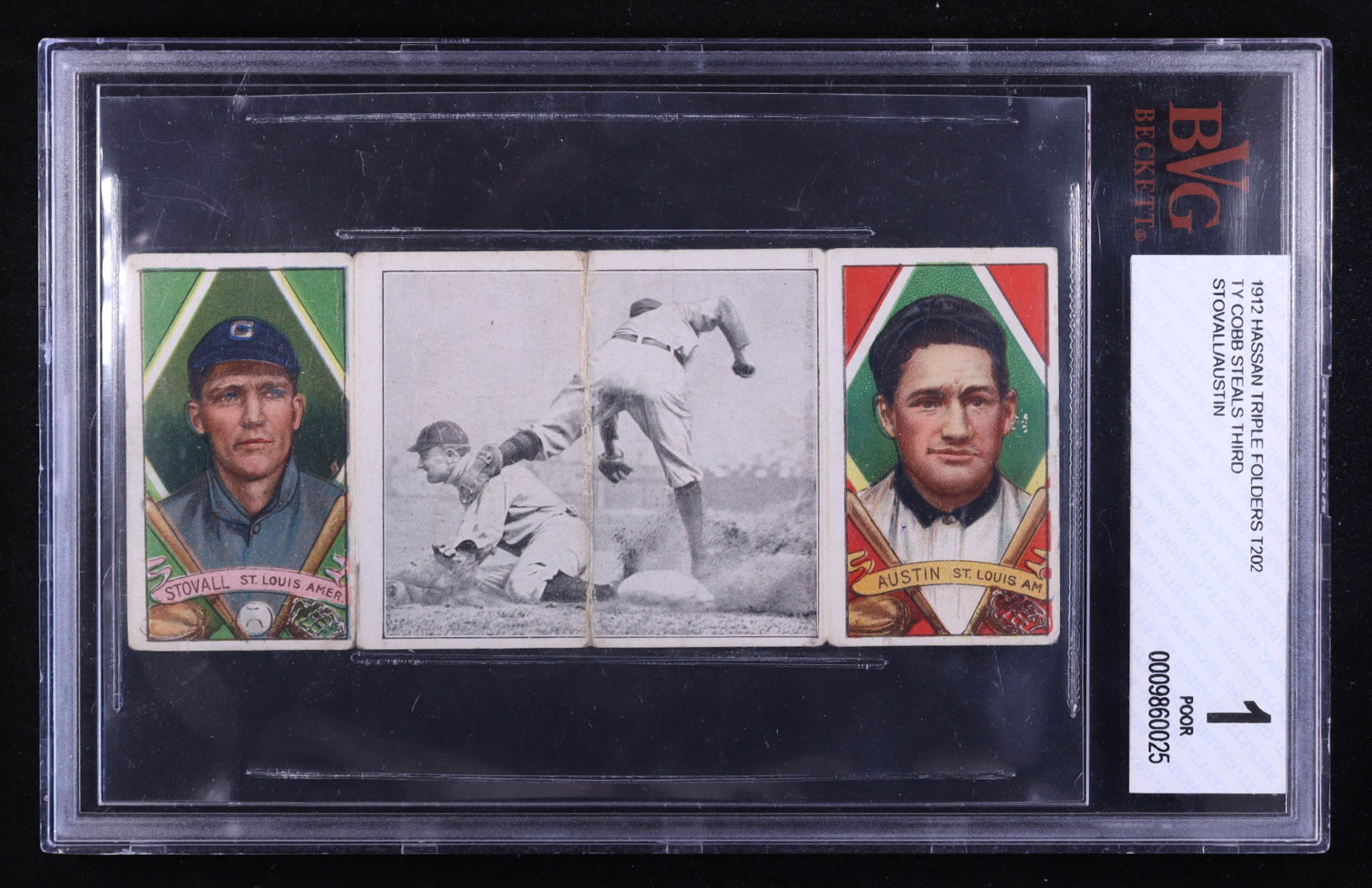 Ty Cobb Steals Third / George Stovall / Jimmy Austin 1912 Hassan Triple Folders T202 #131 (BVG 1)