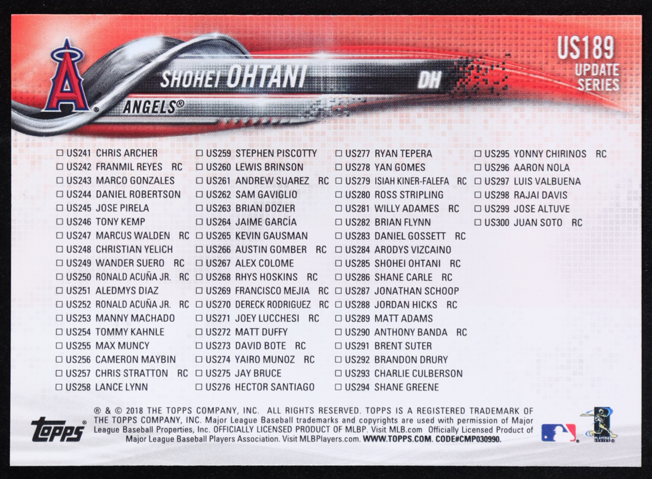 Shohei Ohtani 2018 Topps Update #US189 HL RC