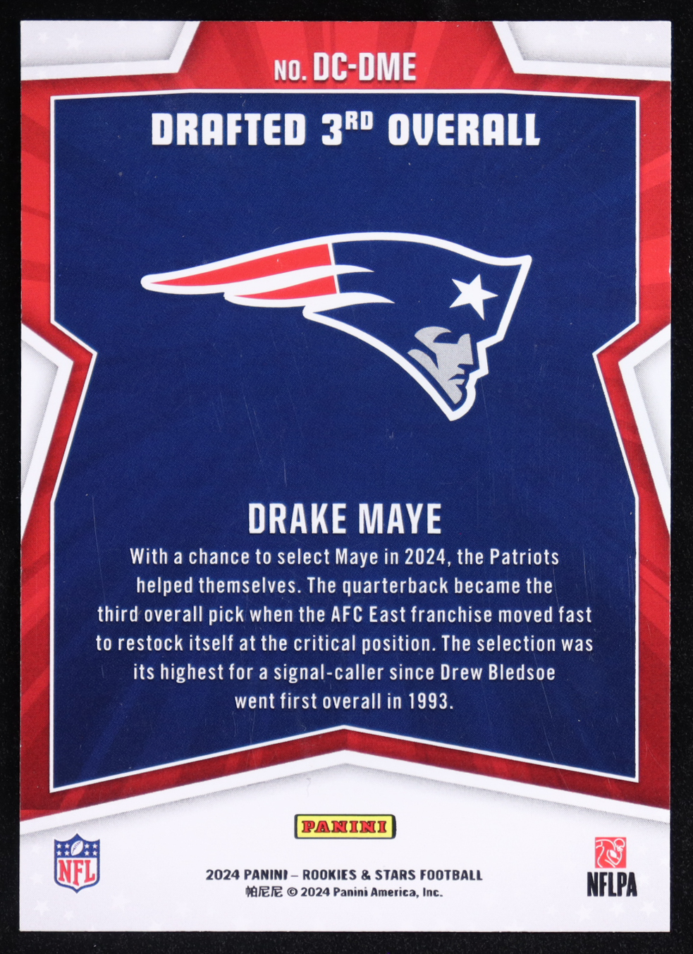 Drake Maye 2024 Rookies and Stars Draft Class #3 RC