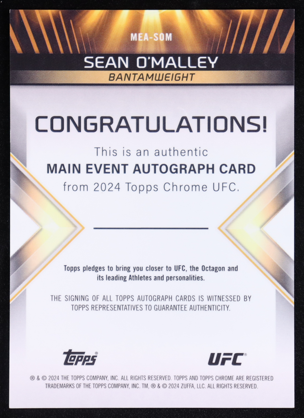 Sean O'Malley 2024 Topps Chrome UFC Main Event Autographs #MEASOM