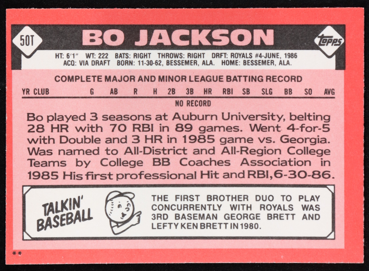 Bo Jackson 1986 Topps Traded #50T XRC RC