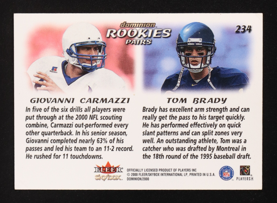 Tom Brady / Giovanni Carmazzi 2000 SkyBox Dominion #234 RC