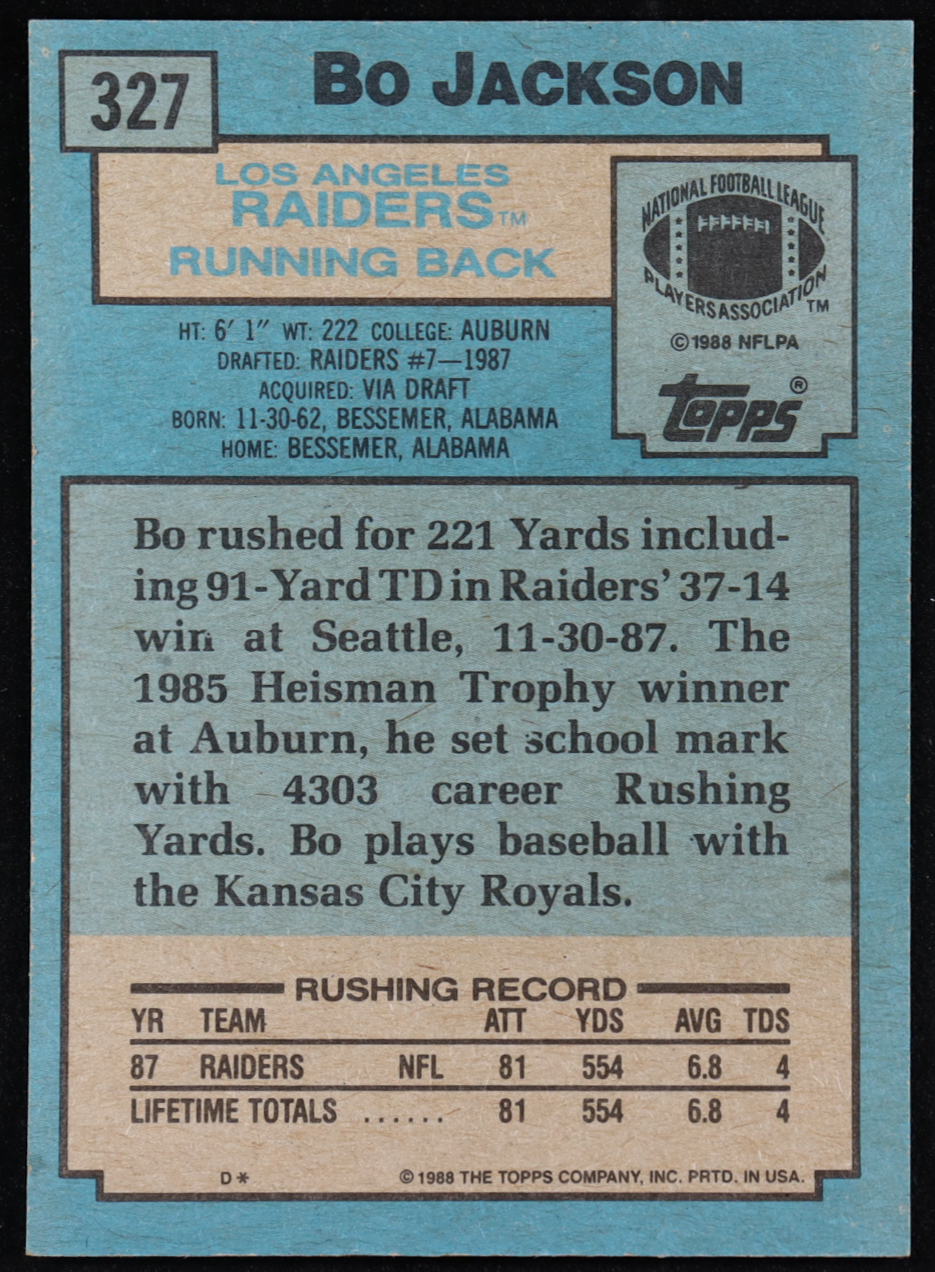 Bo Jackson 1988 Topps #327 SR RC