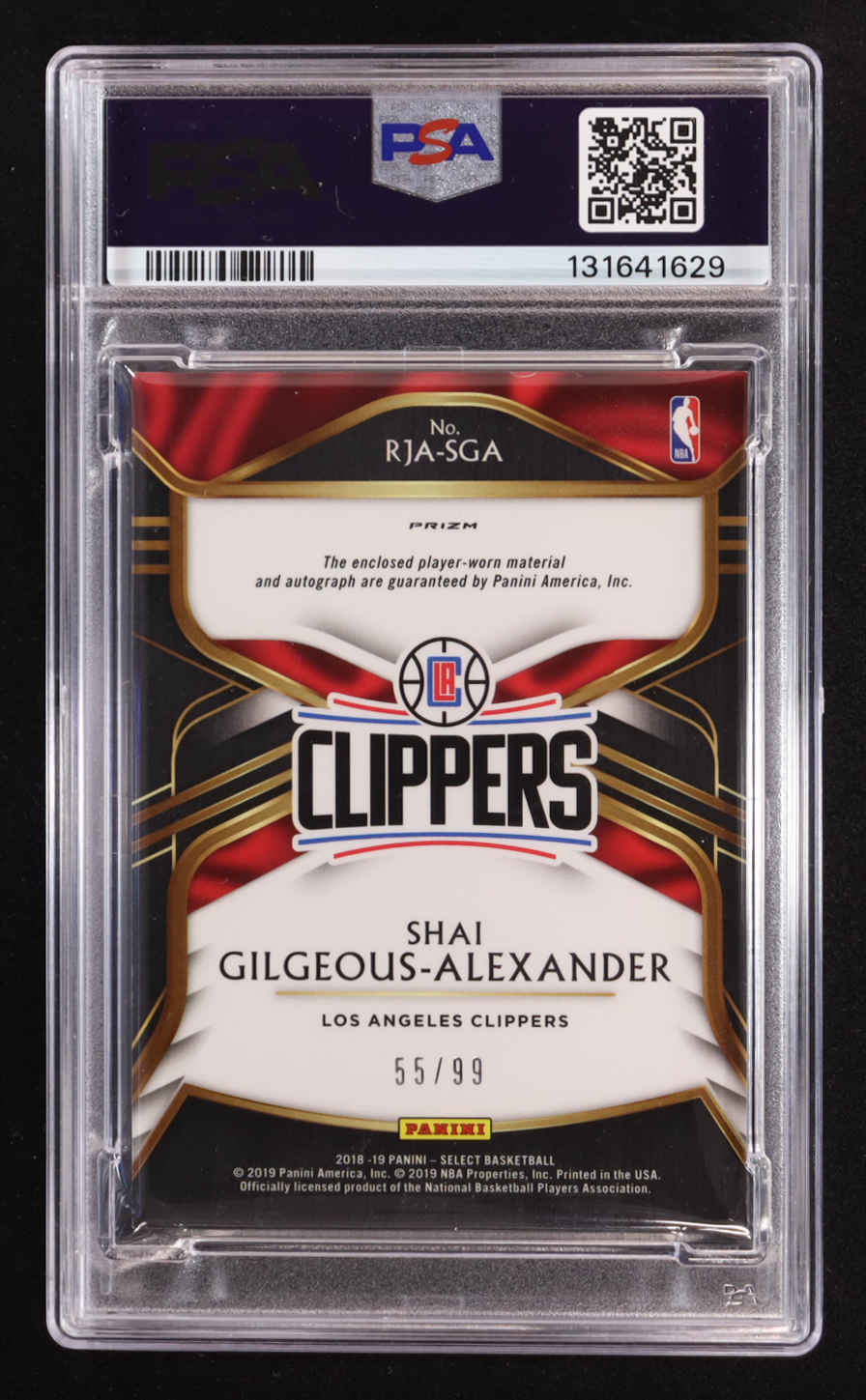 Shai Gilgeous-Alexander 2018-19 Select Rookie Jersey Autographs Prizms Purple Player-Worn #27 #55/99 RC (PSA Authentic | Autograph Graded PSA 10)
