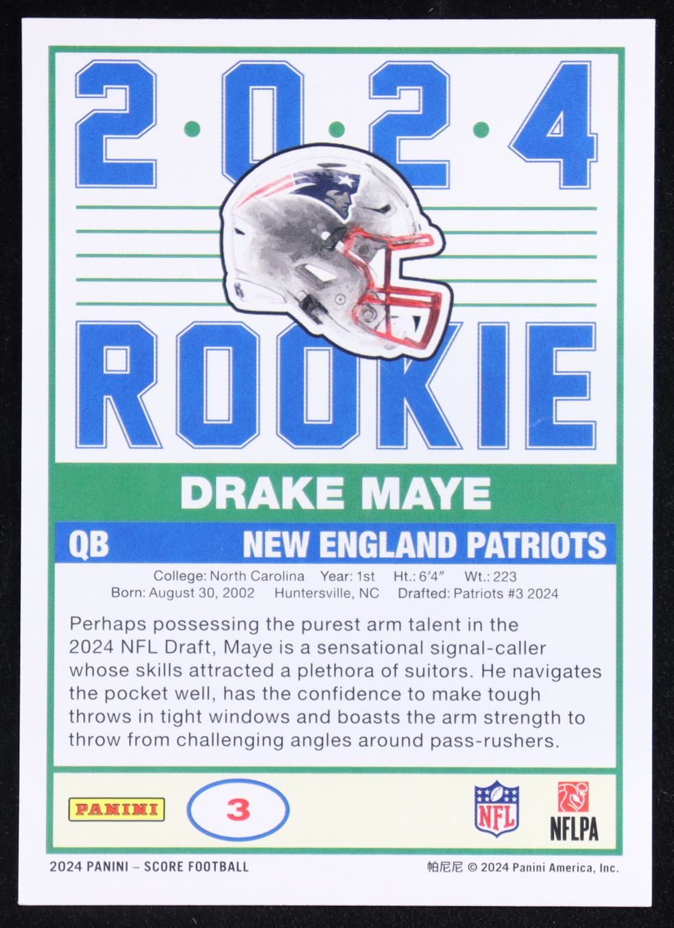 Drake Maye 2024 Score 35th Anniversary Rookie #3 RC
