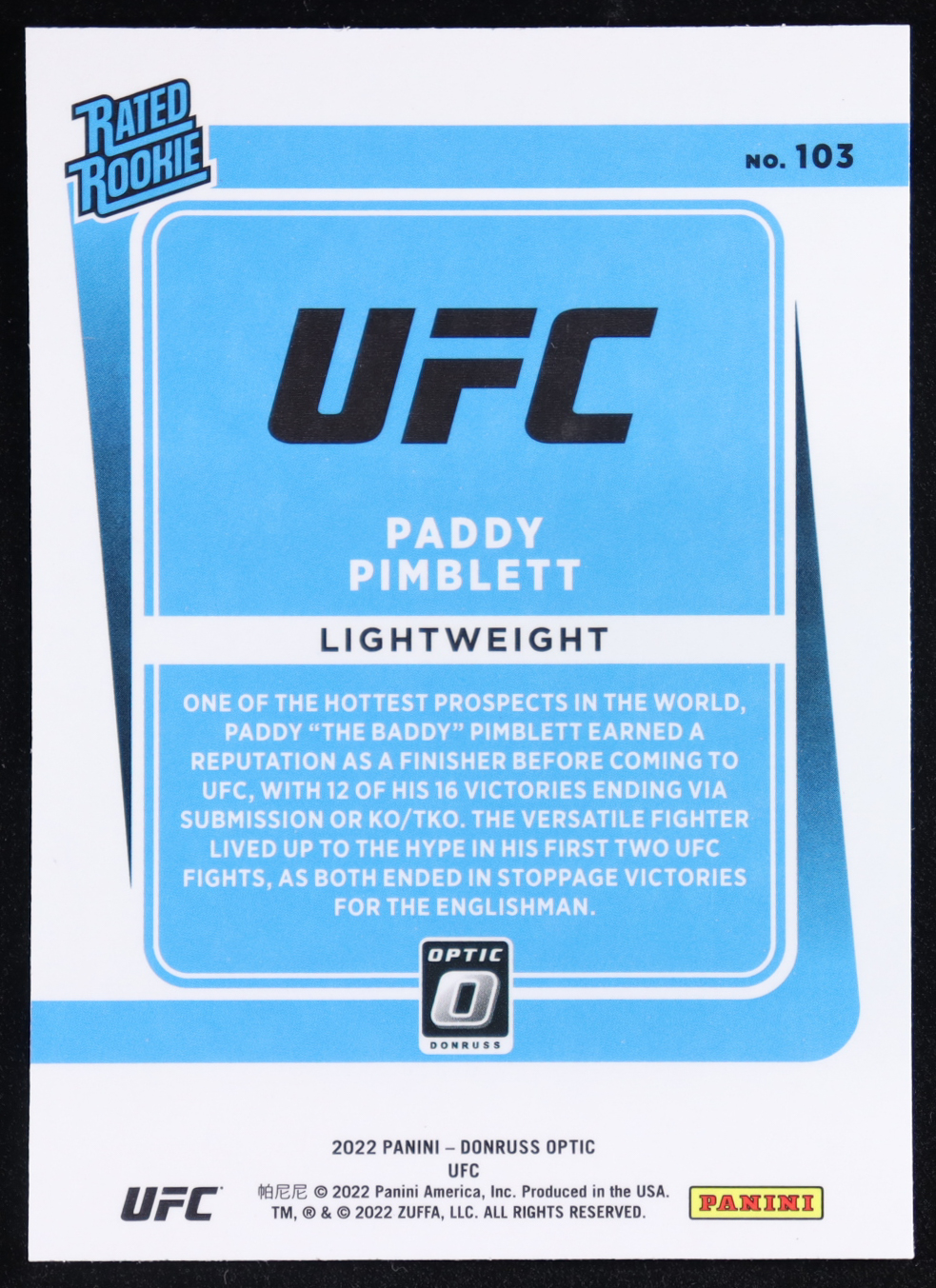 Paddy Pimblett 2022 Donruss Optic UFC #103 RR RC
