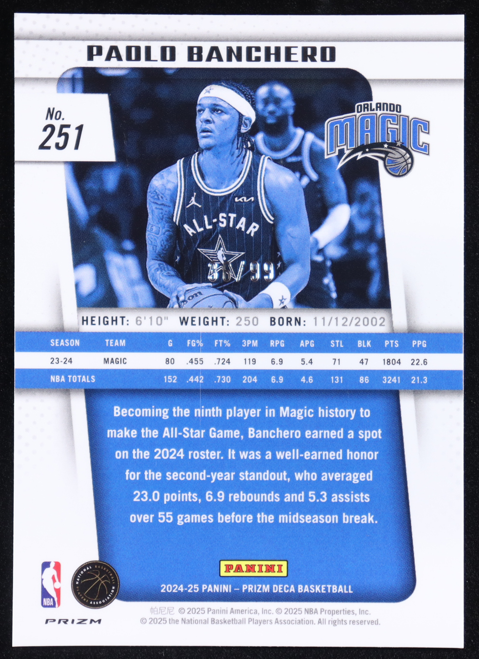 Paolo Banchero 2024-25 Prizm Deca Prizms Purple #251 #36/99 AS