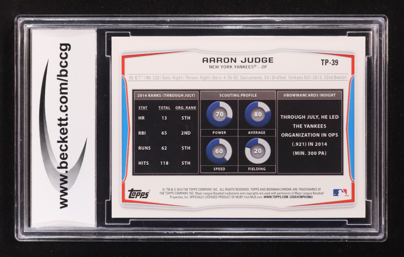 Aaron Judge 2014 Bowman Draft Top Prospects #TP39 RC (BCCG 10)