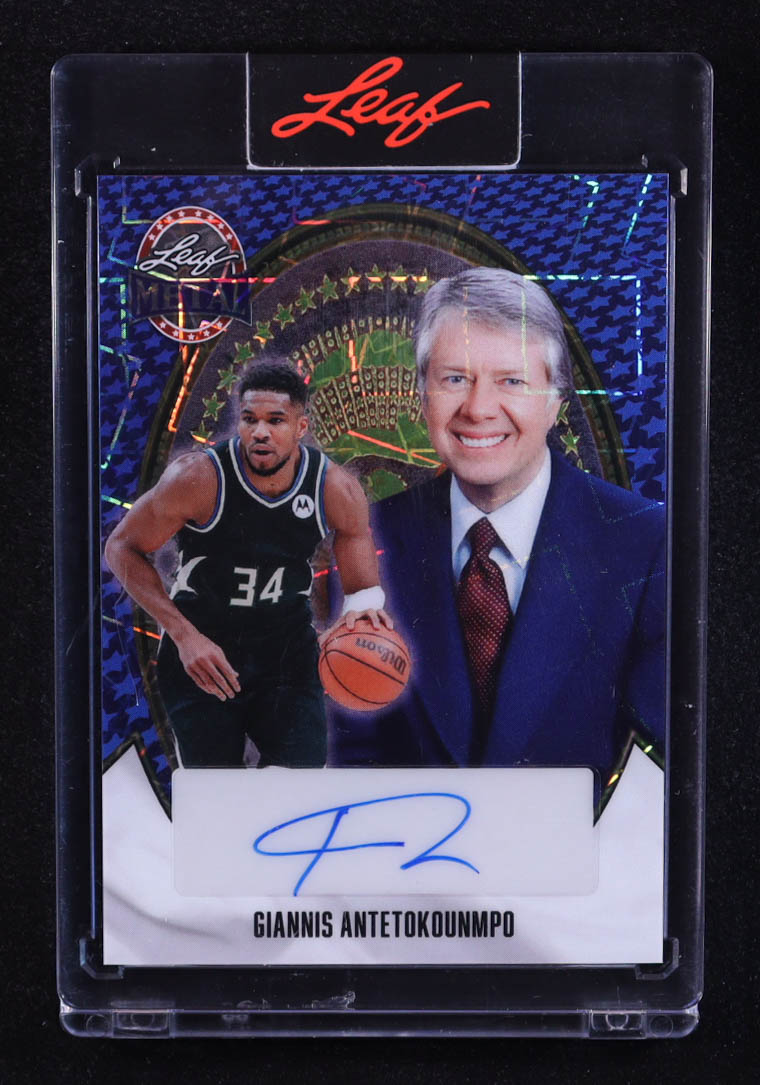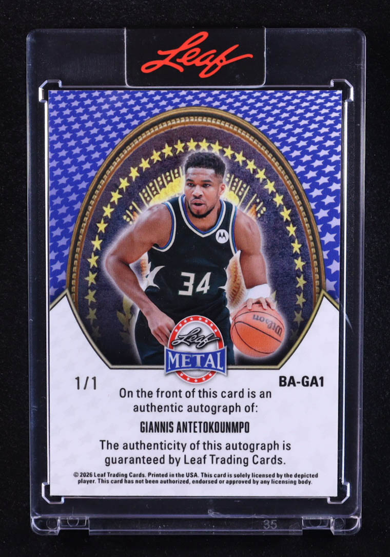Giannis Antetokounmpo 2026 Leaf Metal Presidential Autographs Laser Blue #BAGA1 #1/1