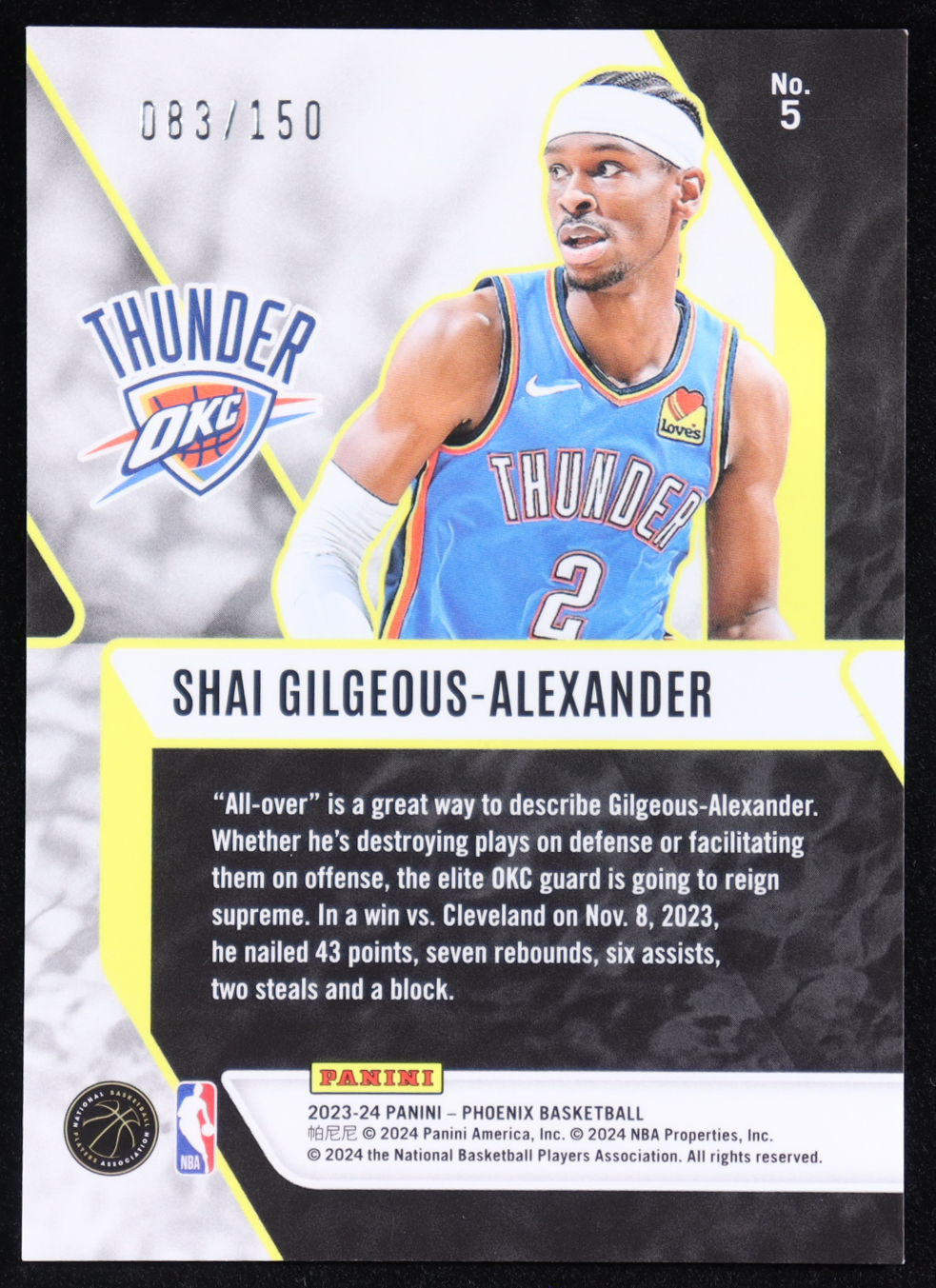 Shai Gilgeous-Alexander 2023-24 Panini Phoenix Fade To Black Phoenix White Lazer #5 #083/150