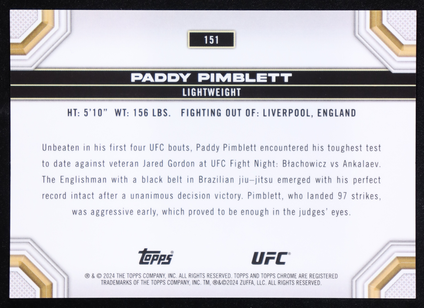 Paddy Pimblett 2024 Topps Chrome UFC Speckle Refractors #151 #171/299