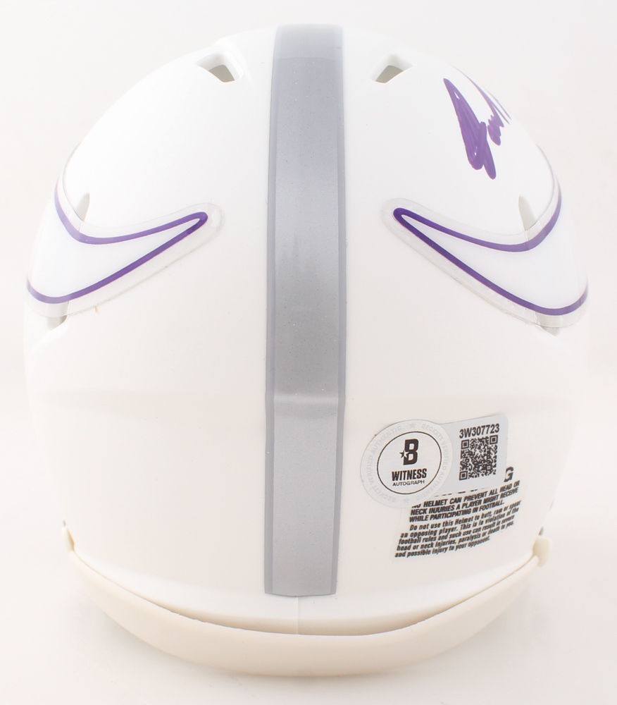 Riddell Minnesota Vikings Speed mini helmet has been hand-signed by Jared Allen.