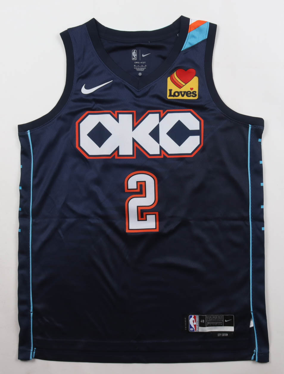 Nike authentic jersey with everything pressed on, size 48. Hand-signed by Shai Gilgeous-Alexander (Oklahoma City Thunder).