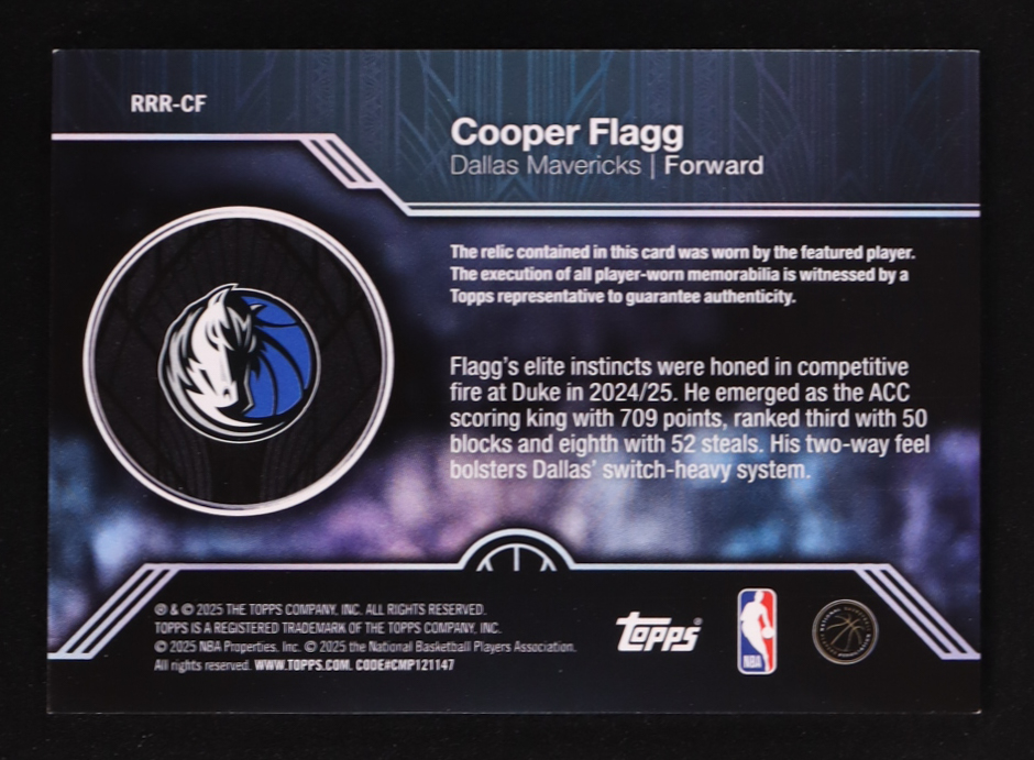Cooper Flagg 2025-26 Topps Rookie Roundball Remnants #RRRCF RC