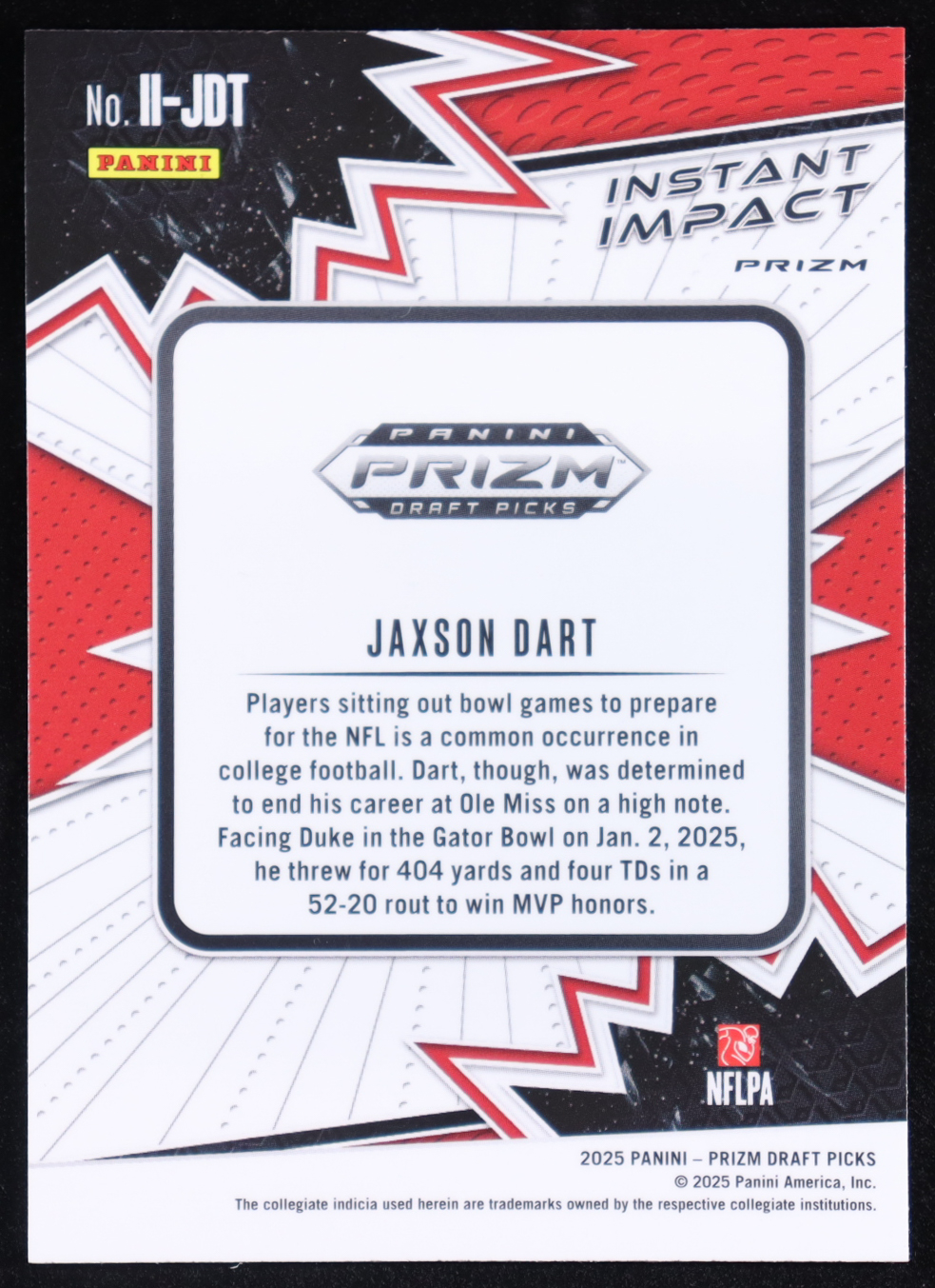 Jaxson Dart 2025 Panini Prizm Draft Picks Instant Impact Prizms Gold Ice #11 RC
