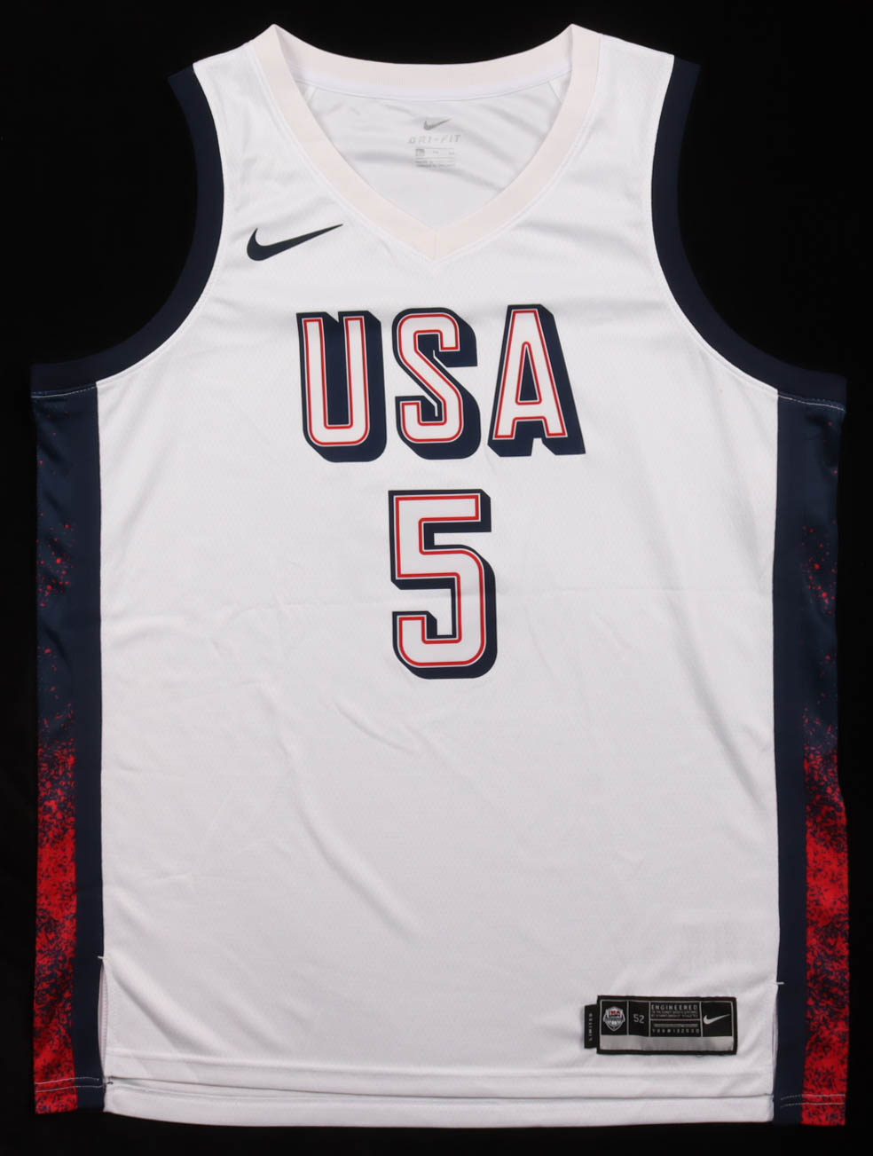 Nike authentic jersey with everything pressed on, size 52. Hand-signed by Anthony Edwards (Team USA).