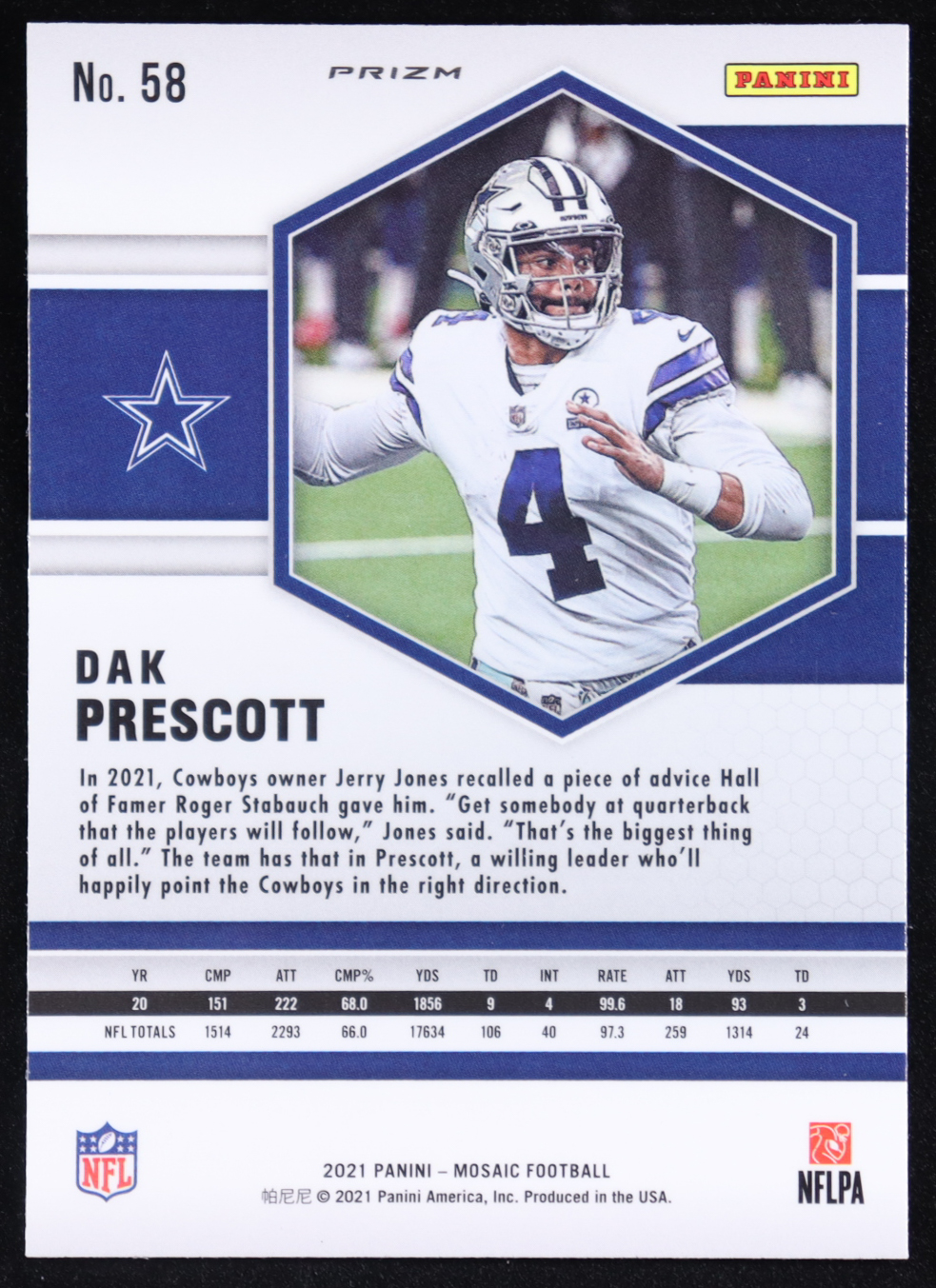 Dak Prescott 2021 Panini Mosaic Mosaic Reactive Yellow #58