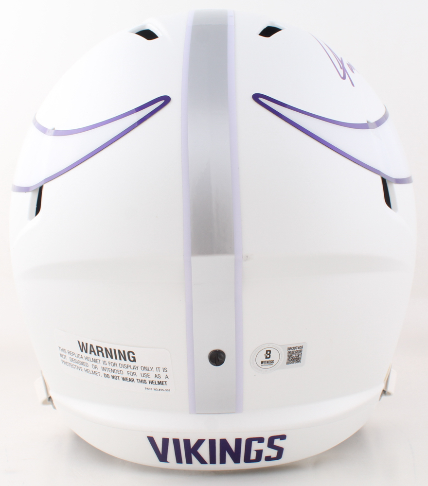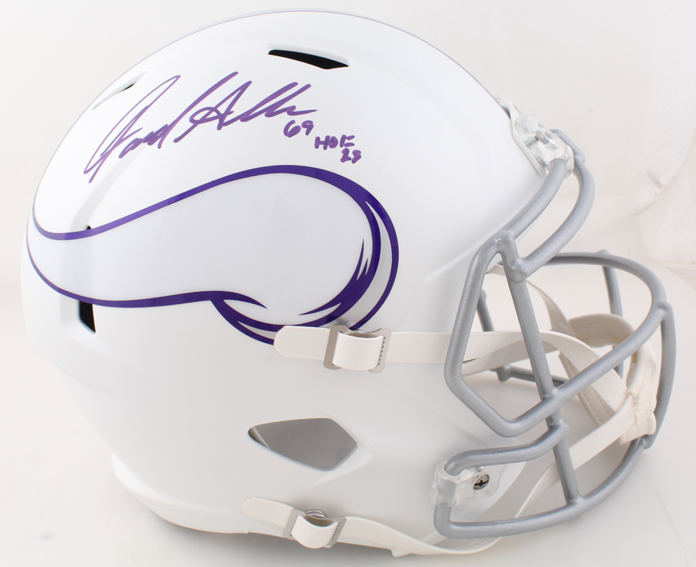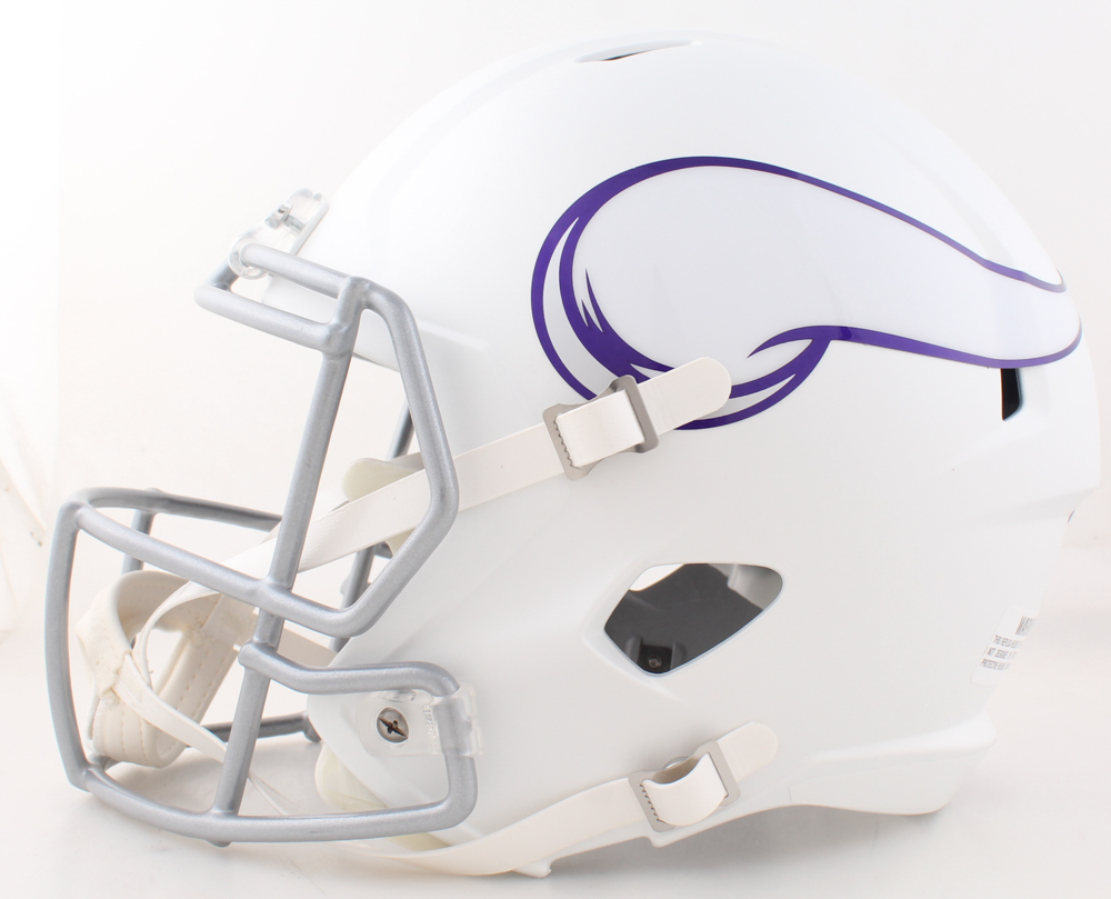 Riddell Minnesota Vikings full-size replica Alternate Speed helmet. Hand-signed and inscribed by Jared Allen.