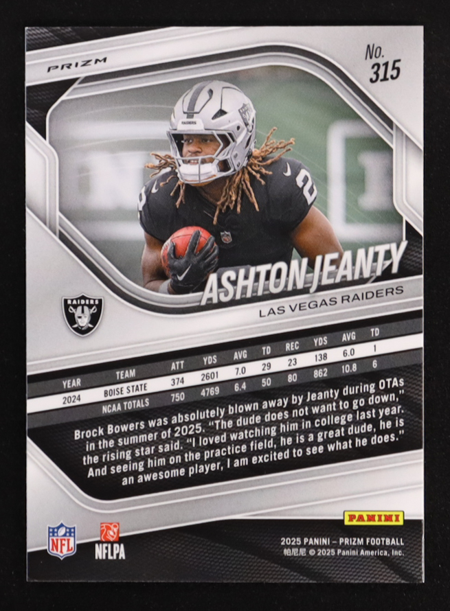 Ashton Jeanty 2025 Panini Prizm Prizms Lazer #315 RC