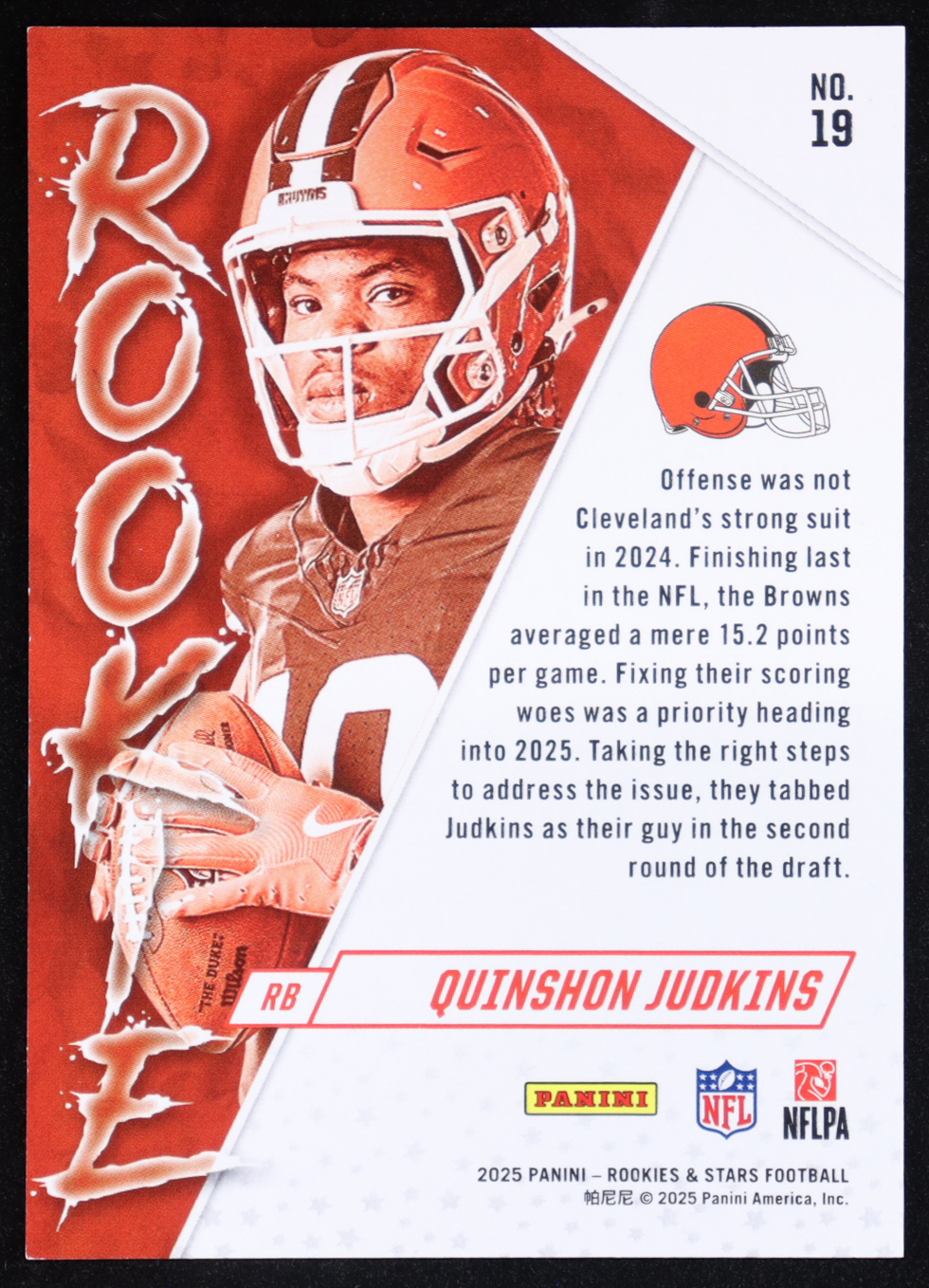 Quinshon Judkins 2025 Panini Rookies & Stars #19 RC #04/25