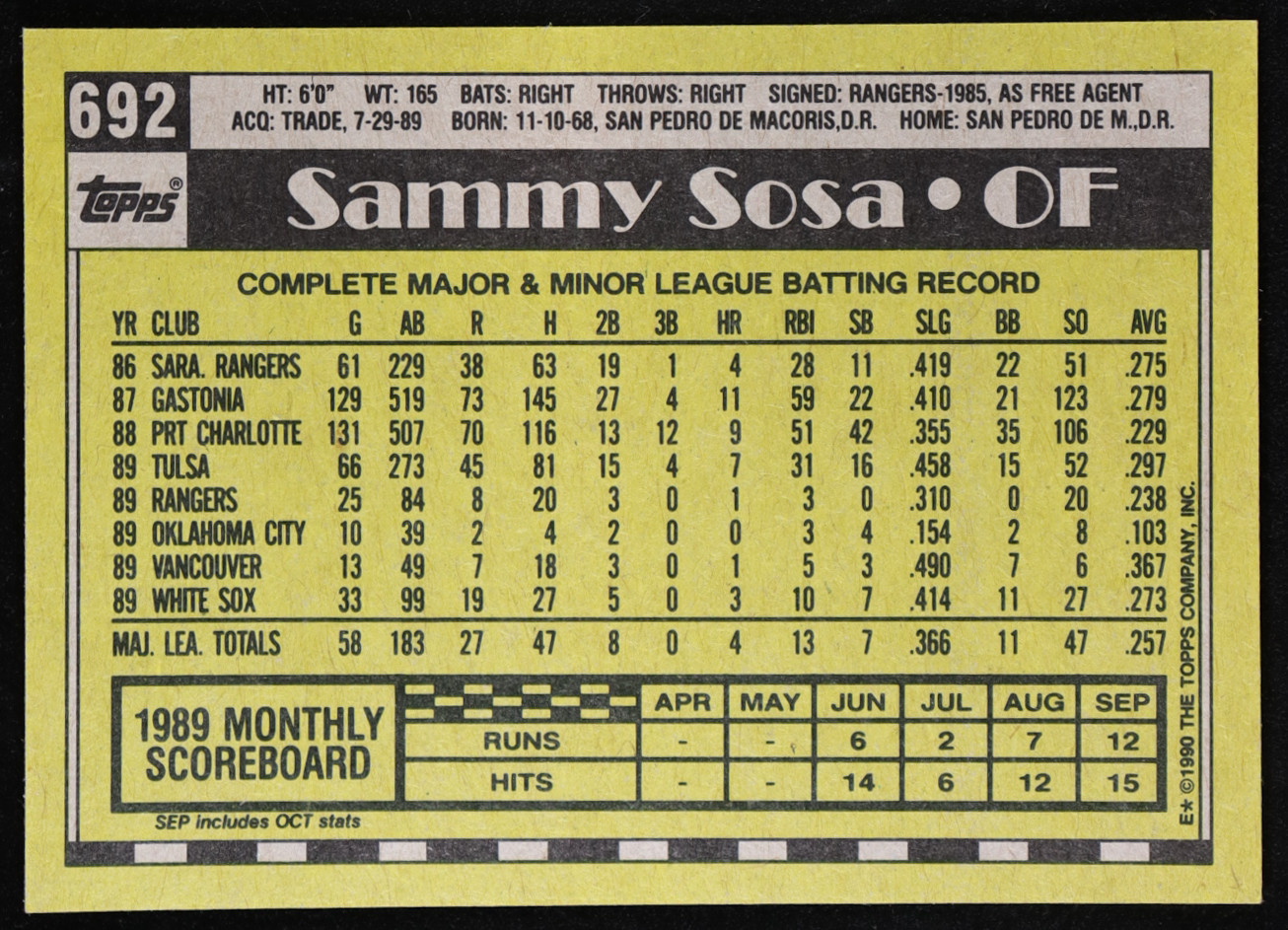 Sammy Sosa 1990 Topps #692 RC