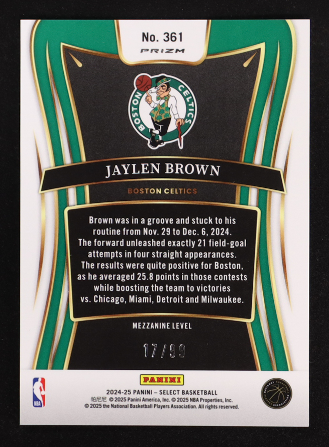 Jaylen Brown 2024-25 Select Purple Cracked Ice Prizms #361 #17/99