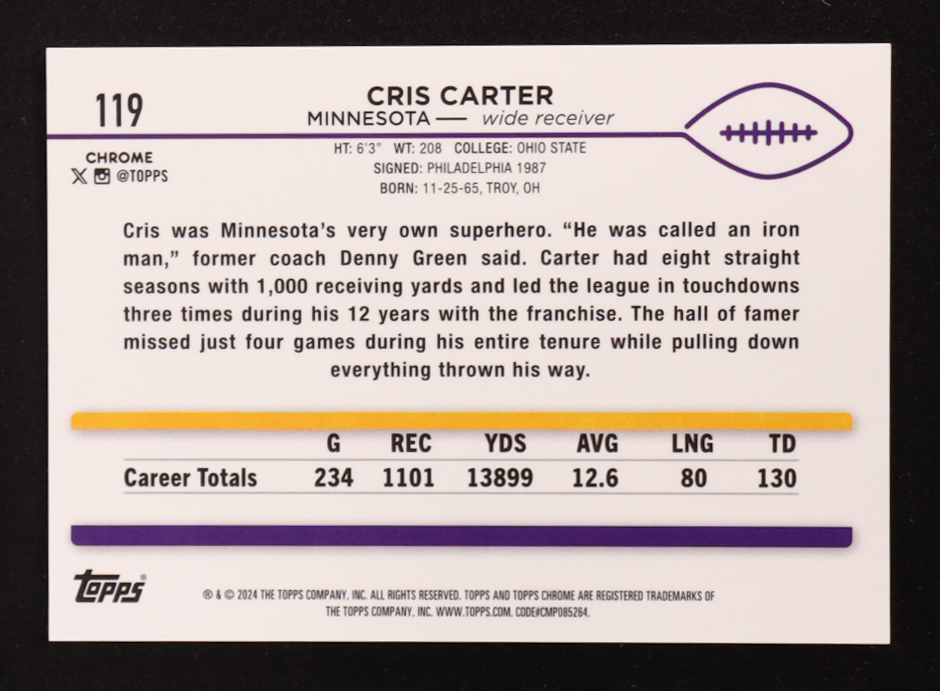 Cris Carter 2024 Topps Chrome White Geometric Refractors #119 #4/15