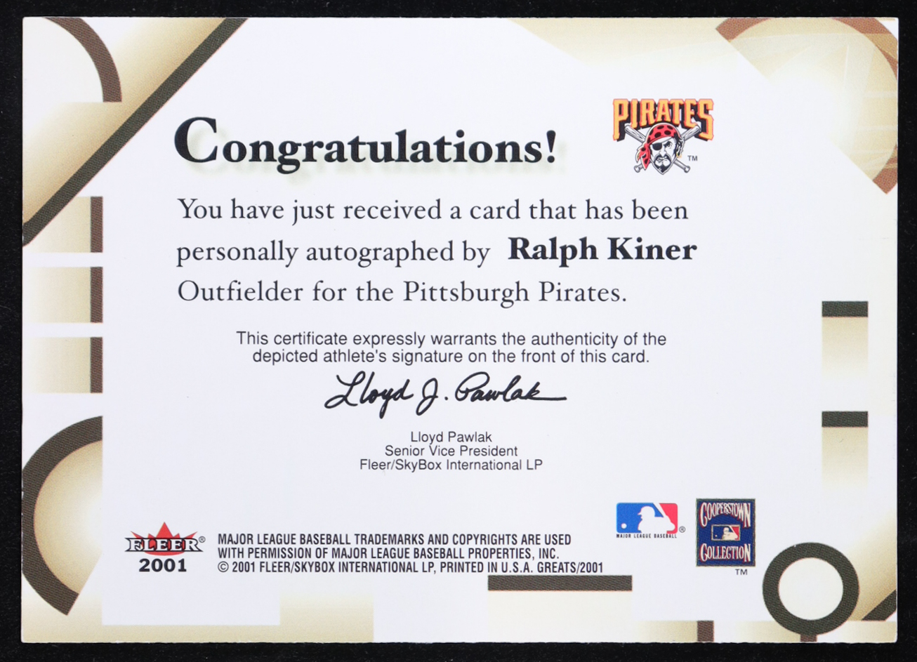 Ralph Kiner 2001 Greats of the Game Autographs #NNO