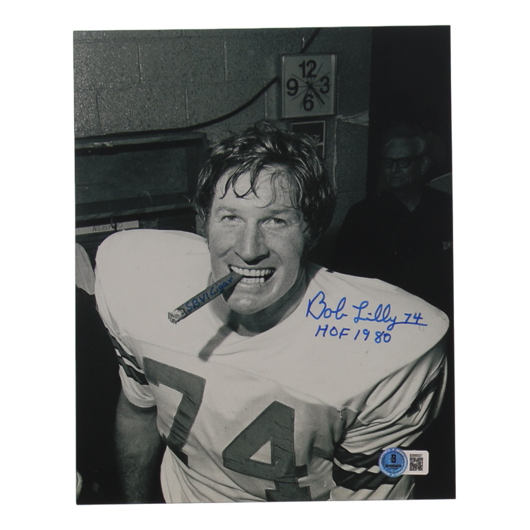 Bob Lilly Signed Cowboys 8x10 Photo Inscribed "HOF 1980" & "SBVI Cigar" (Beckett)