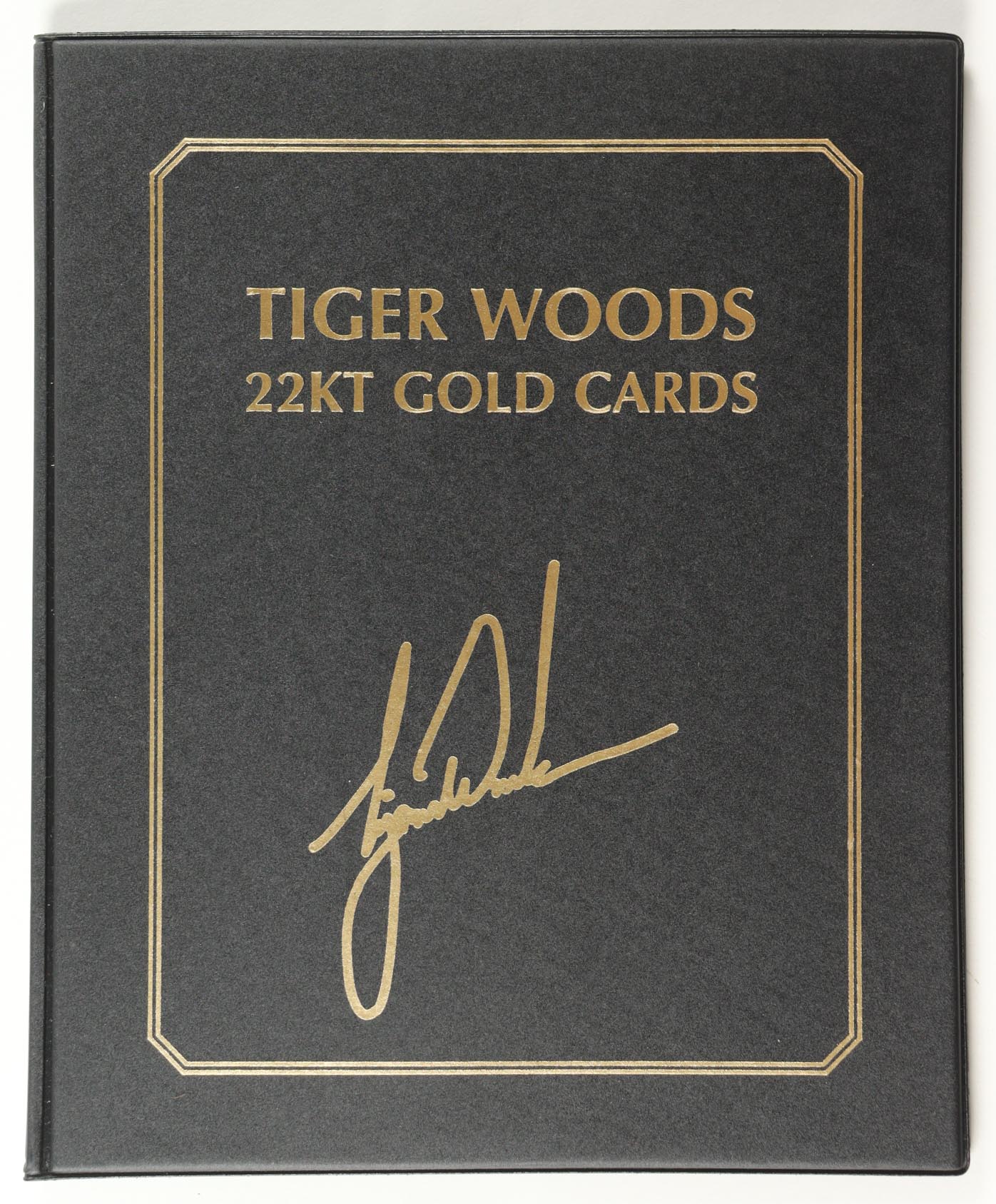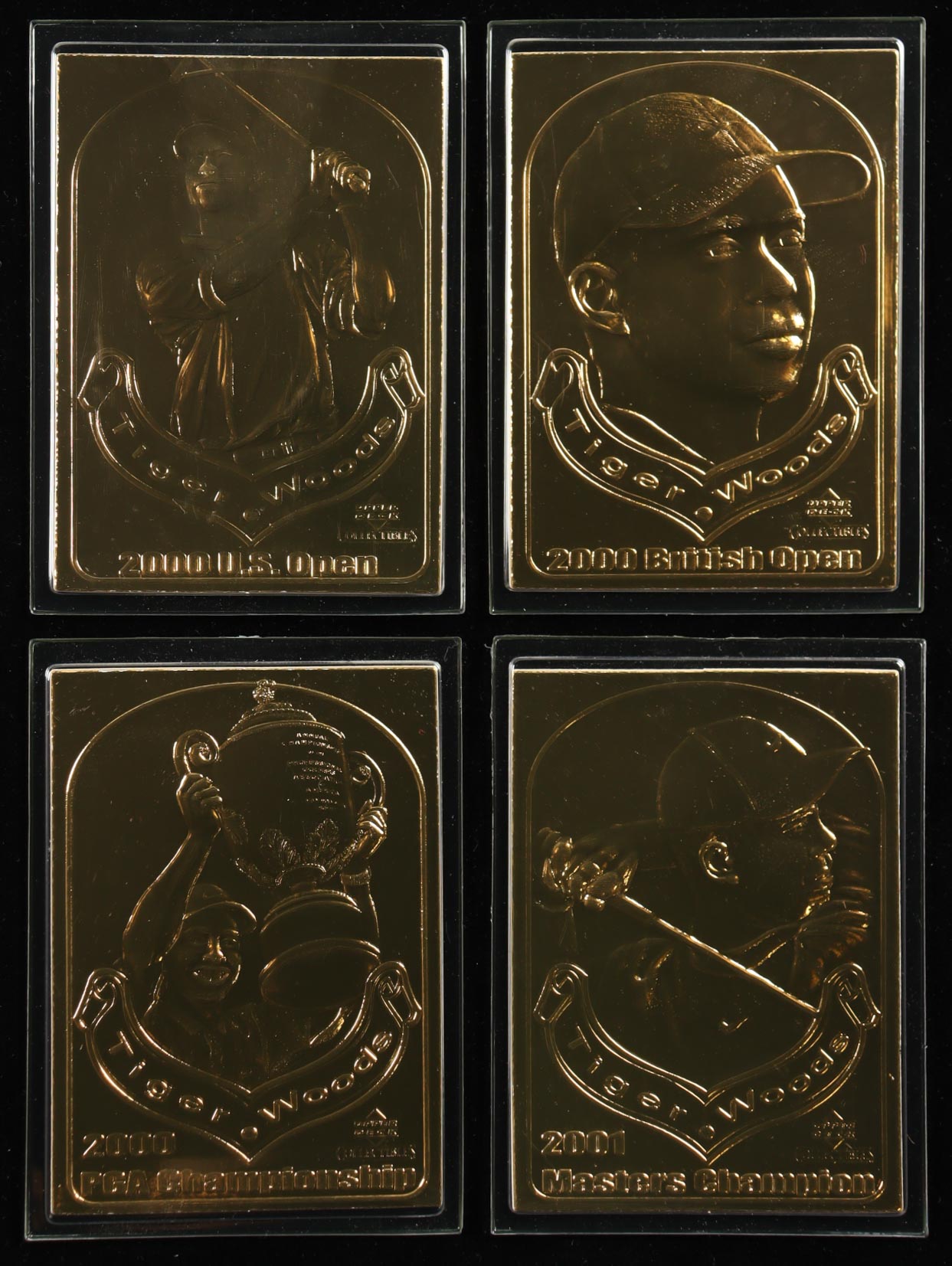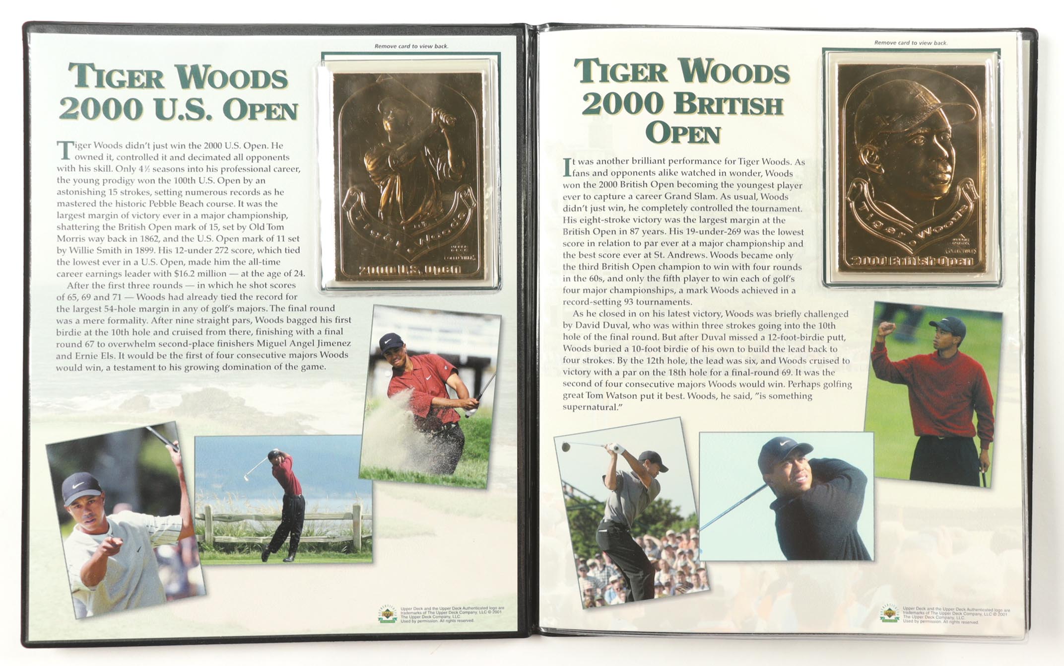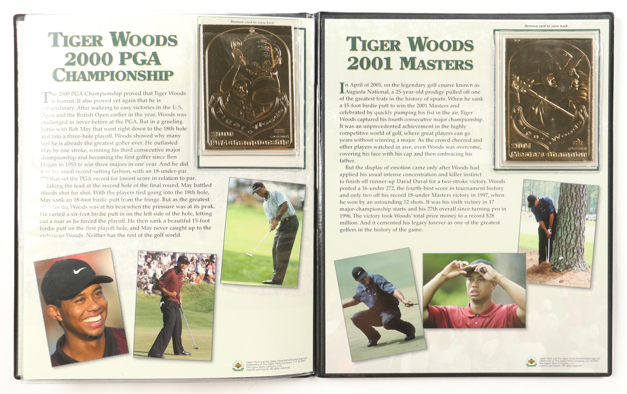 Tiger Woods LE 2001 Upper Deck Collectibles Set of (4) 22KT Gold Cards with Display Folder
