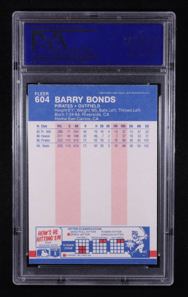 Barry Bonds 1987 Fleer #604 RC (PSA 9)