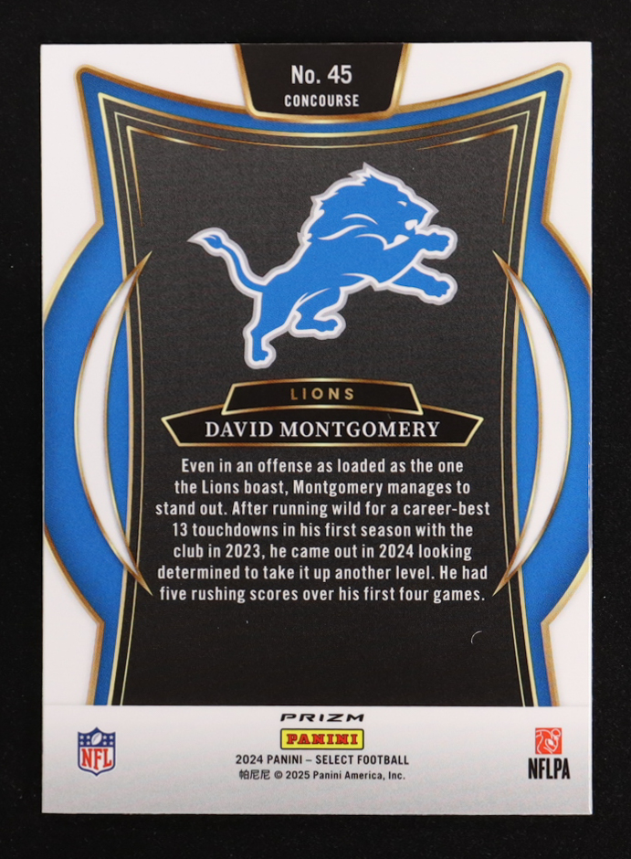 David Montgomery 2024 Select Prizm Zebra Shock #45