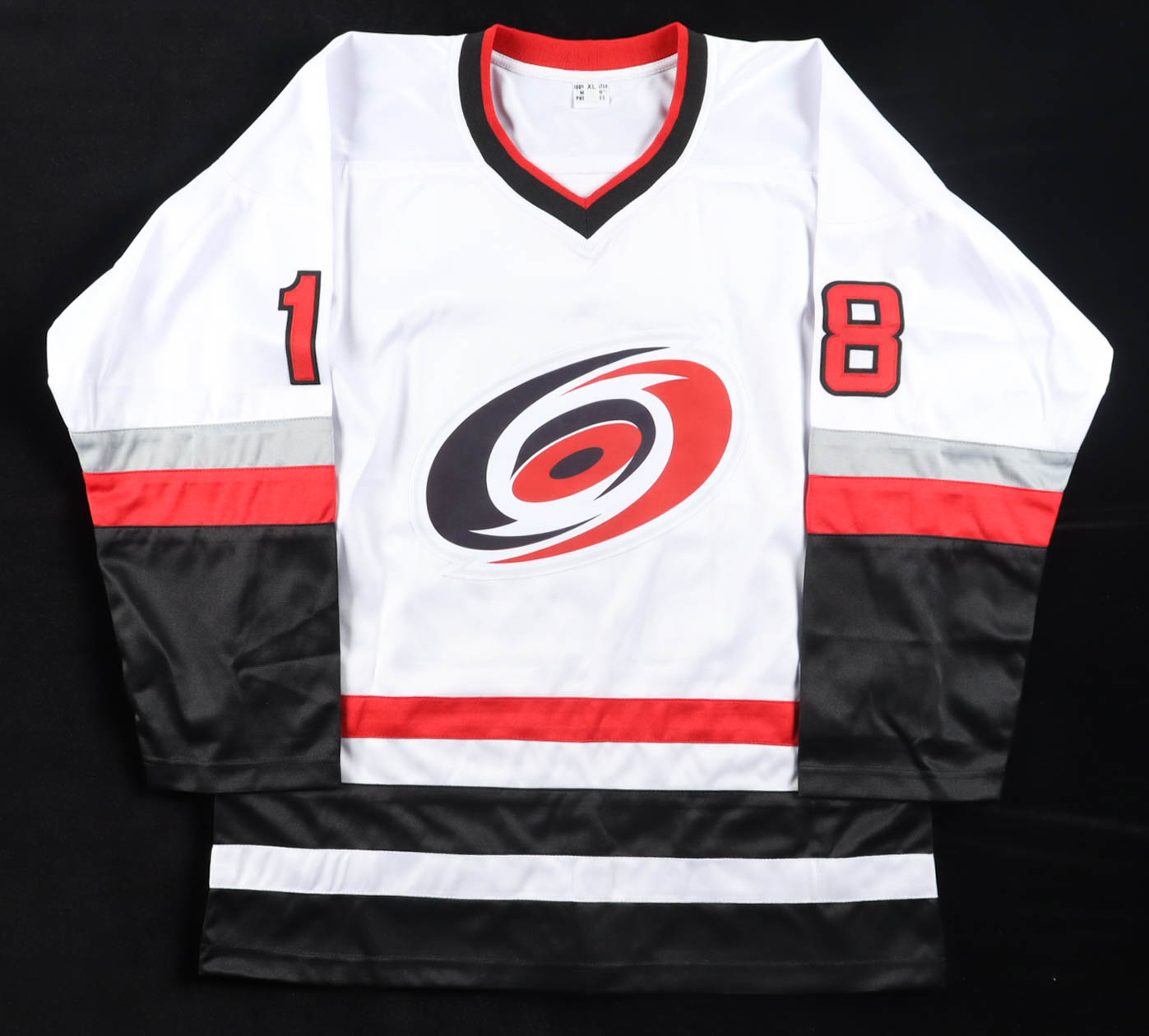 Custom jersey. Everything is sewn on, size XL. Hand-signed and inscribed by Mark Recchi (HOF).