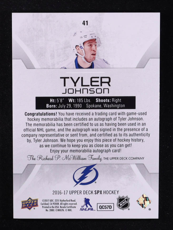 Tyler Johnson 2016-17 SPx Gold #41 Patch Autograph #40/49
