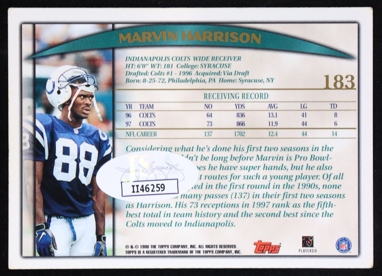 Marvin Harrison Signed 1998 Topps #183 (JSA)