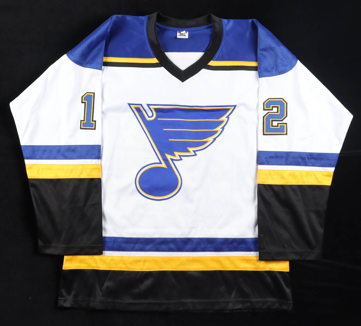 Custom jersey with everything sewn on, size XL. Hand-signed and inscribed by Adam Oates (HOF).