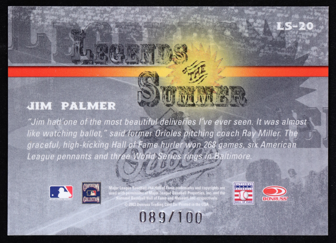 Jim Palmer 2003 Donruss Signature Series Legends of Summer Autographs #20 #089/100